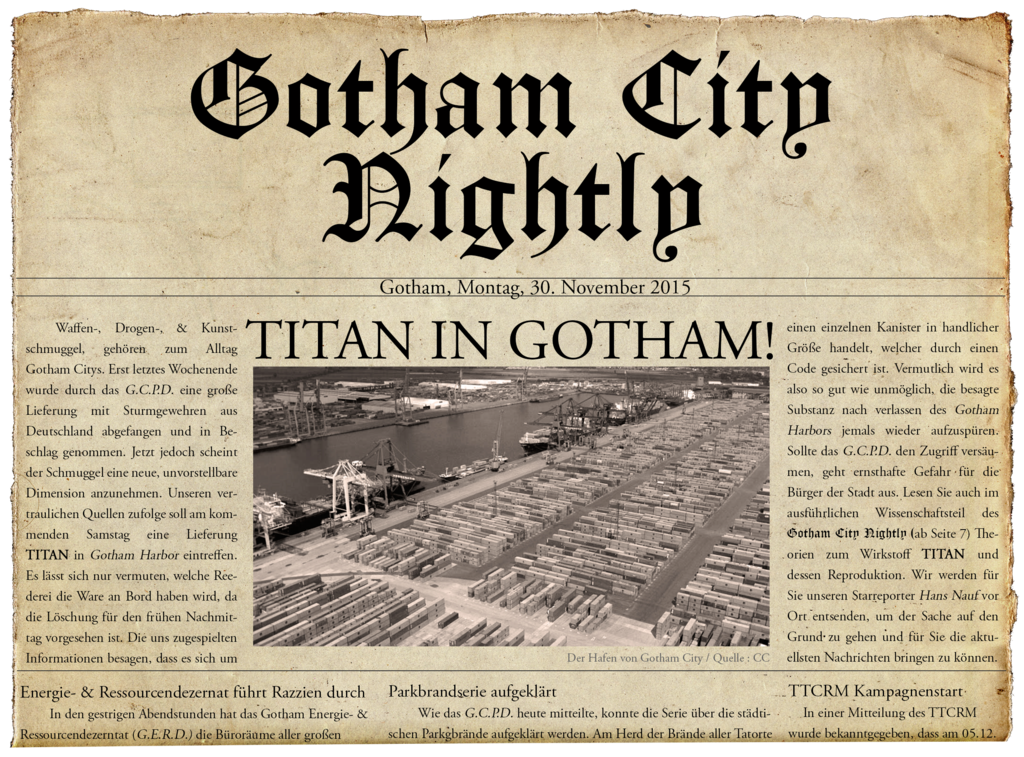 Pressemitteilung des G.C.P.D. zur Meldung über "TITAN in Gotham", erschienen im Gotham City Nightly: