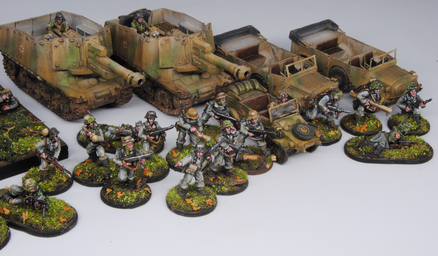 Das mit dem Pz IV G ist ein guter Tipp. Bin jetzt vom Bolt Action Sortiment ausgegangen. Aber optisch macht es keinen Unterschied ob H oder G. Der G kann die Schürzen ja auch haben. So würde ich auch noch eine Panzerschreck auf 800 Punkte reinkriegen. :mrgreen:
