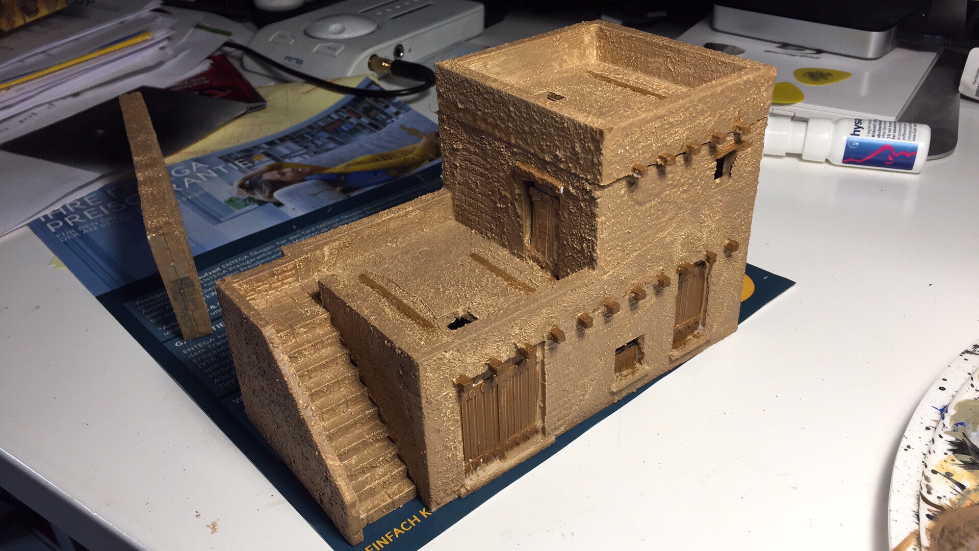 Für den nahen Ost gibts jetzt erst mal ein Fort, frisch von der Druckplatte, roh und unbearbeitet. Werde es wohl mit PVA/Sand verhübschen und dann "weißlich" streichen (muss ich mal recherchieren, ggf. wars ja auch ein Lehmputz)
