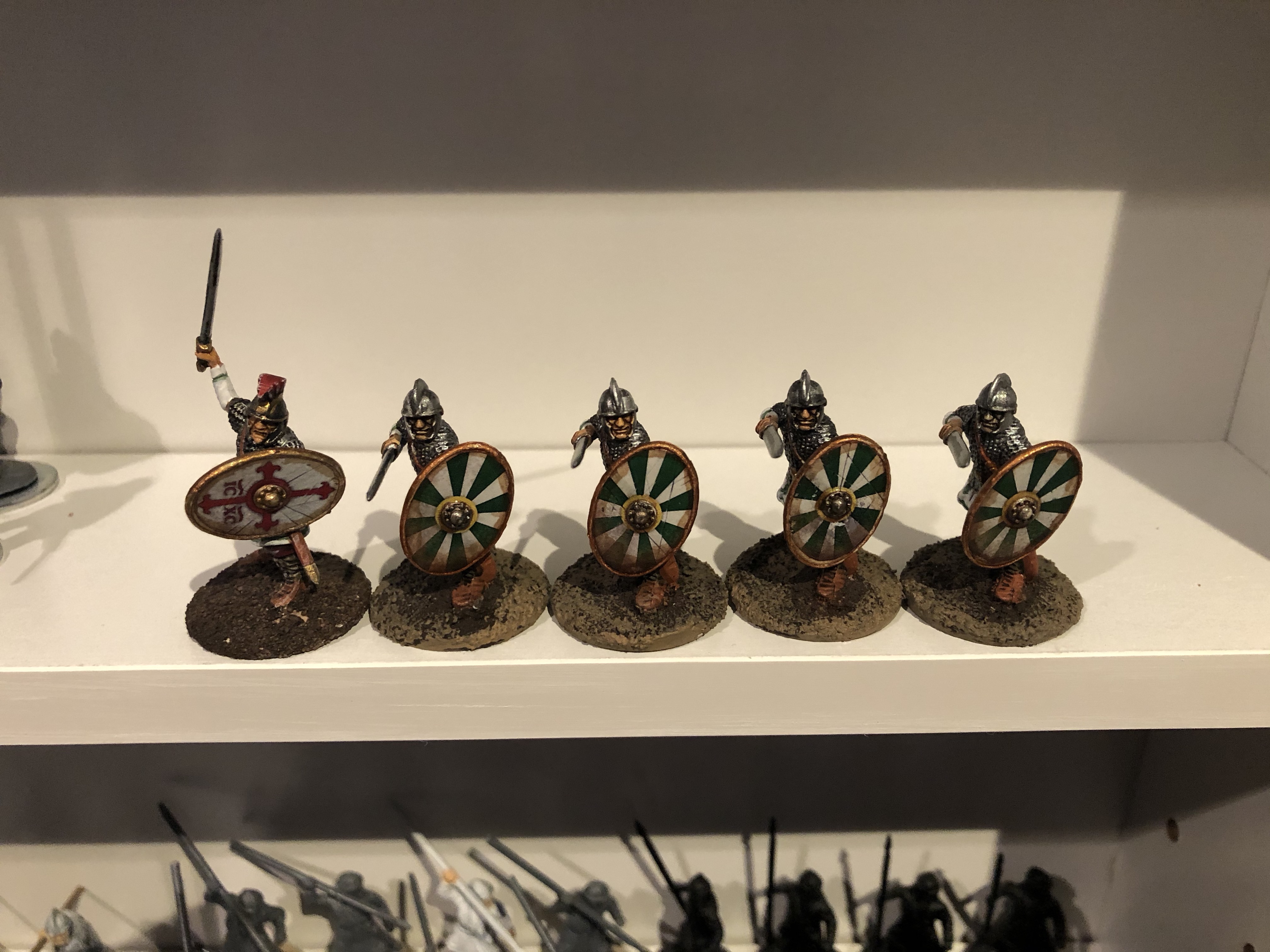 Ich hab vor Jahren mal das Regelwerk und Arthur & Aetius gekauft, nachdem mir eine Box Late Roman Infantry von GB nach Hause gefolgt ist. Über die Zeit hinweg kam SAGA 2, ich kaufte weitere Minis dazu, die Minis liegen bzw stehen unbemalt bei mir im Kasten aber nun war ich inspiriert von der SAGA Heerschau mal fleissig und hab angefangen mit den minis weiterzumachen (ich hatte den Chef schon mal fertig gemacht).