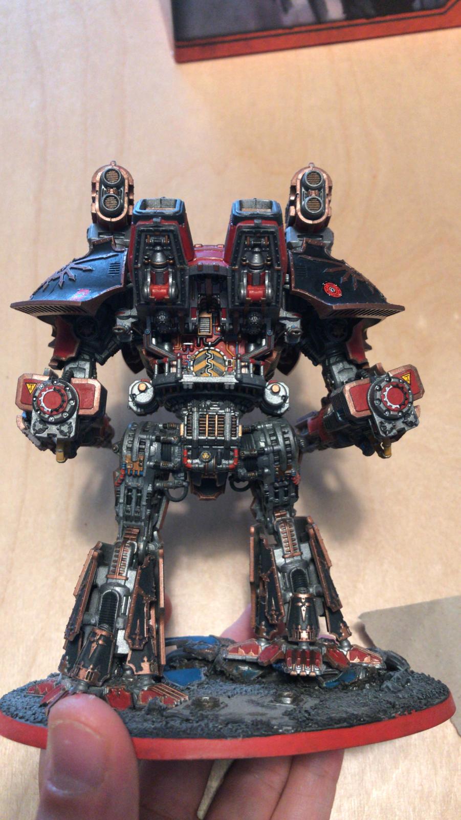 Hier schon mal die ersten Bilder der beiden Warhounds die ich gerusht habe damit ich ein paar kleine Spiele machen kann. Als nächstes ist der Reaver und die Gefechtsoptionen dran. Waffen werden natürlich magnetisiert um bei Bedarf gegen die widerlich überteuerten Forgeworld Waffen getauscht zu werden