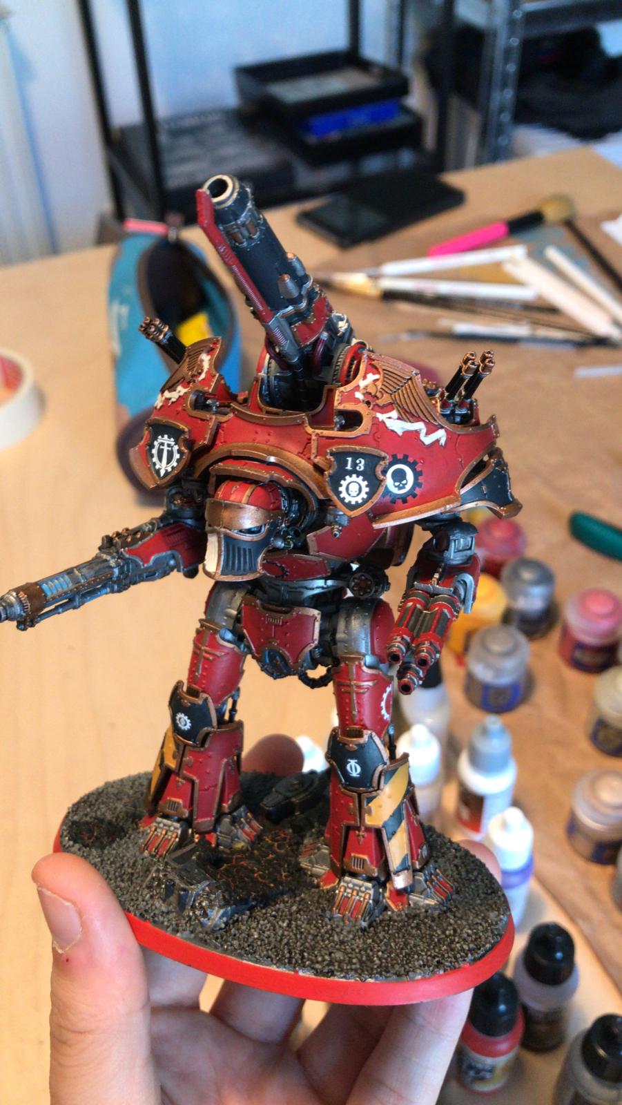 Geplant sind neben dem Warlord, dem Reaver und den 2 Warhounds aus der Starterbox noch ein weiterer Warlord sowie ein Warbringer Nemesis und einige Knights, hauptäschlich Acastus für jede Menge Feuerkraft und vielleicht dann auch ein bisschen MDF Gelände im Dropzone Maßstab im intakten und zerstörten Zustand für ein bisschen Geländezerstörung