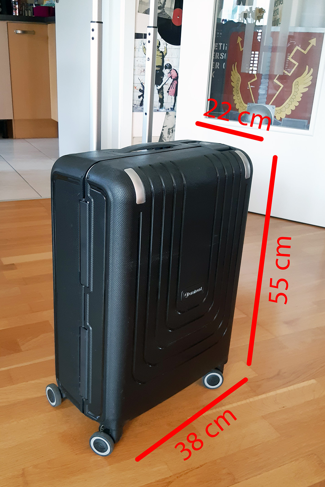 1) Ich habe einen geeigneten Hartschalenkoffer (Trolli) gesucht. "Geeignet" heißt, er muss nicht nur eine praktikable Größe haben, sondern auch andere Features, auf die ich noch zurückkomme. Nachdem ich einen ganzen Vormittag lang Geschäfte abgeklappert hatte, bin ich schließlich fündig geworden bei einem Koffer der Marke "eminent", den es bei Karstadt zufällig sogar im Sonderangebot gab :party Die meisten Hartschalenkoffer öffnen genau in der Mitte, aber ich wollte einen mit zwei unterschiedlich großen Hälften - die größere Hälfte ist für die Armee, während die kleinere für das Verstauen des (Stoff-)Geländes ausreicht.