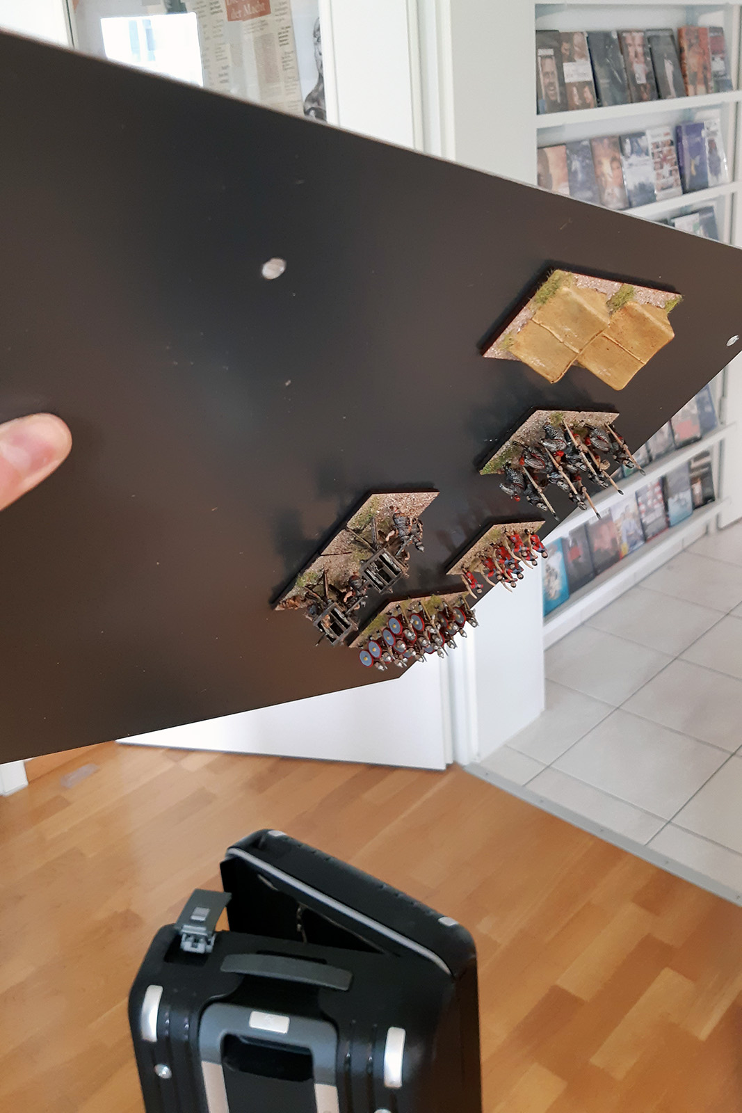 Da ich kein Auto habe, musste ich mir überlegen, wie ich meine DBMM-Armeen transportieren kann. Hier stelle ich meine DIY-Lösung vor. (Vorweg: Diese Lösung basiert darauf, dass unter meinen Basen ultrastarke Neodym-Magnetfolie klebt (das Zeug ist leider auch ultrateuer :leider ), aber ich wollte es hier trotzdem mal präsentieren...)