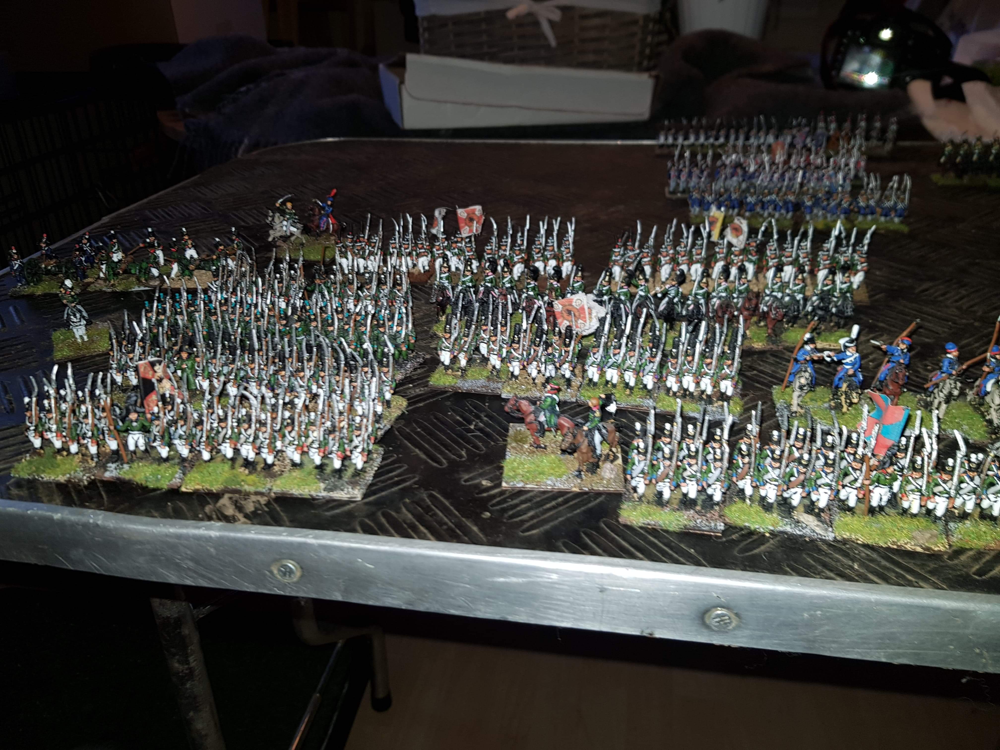 I'm selling a lot of 15mm Napoleonics. They are a mix of AB, fantasin and blue moon I think. They are painted in various styles, some have standard 3 layer thing, some have just black line shading. Basing for infantry varies between 8 and 6 per base battalions are either 24 or 32 strong.