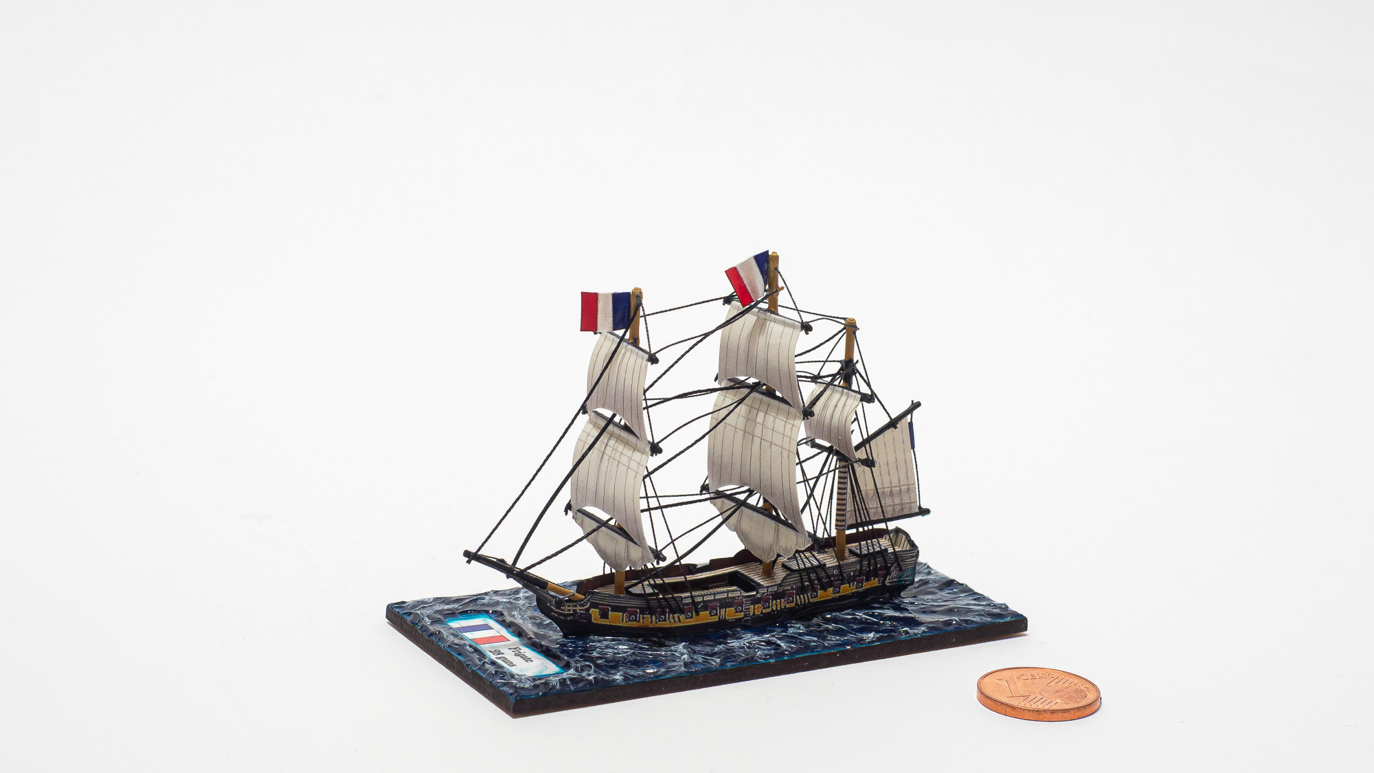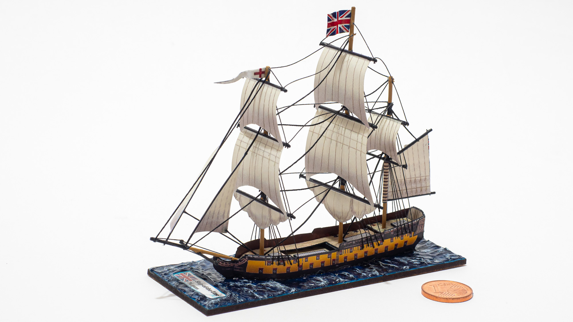 Meine Flotte aus der napoleonischen Ära besteht aus jeweils sechs britischen und sechs französischen Schiffen. Sie stammen weder aus dem 3D-Drucker noch bestehen sie aus Metall, sondern – aus Papier! Es handelt sich um Bastelbögen des sich selbst als "War Artisan" bezeichnenden Jeffrey Knudsen, der in seinem Webshop ein ganzes Arsenal an Schiffen anbietet, alle von ihm selbst entworfen.