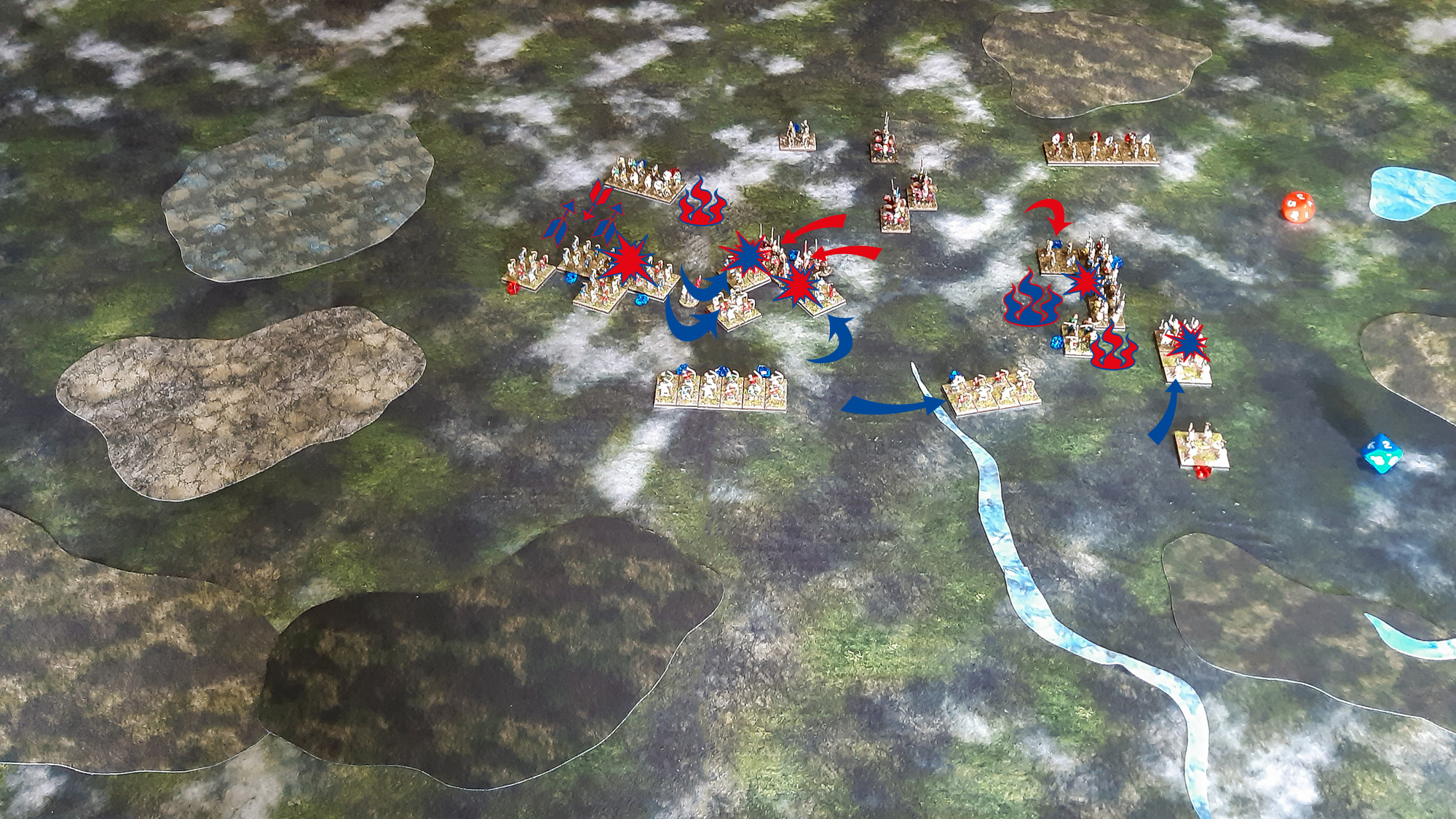 Das System der zufällig bestimmten taktischen Doktrinen hat wieder einmal zu einem interessanten und unorthodoxen Schlachtverlauf geführt. Insbesondere der unkonventionell defensive Einsatz der schweren Reiterei auf Seiten der Karolinger, die mit nur einem offensiven Verband operierten, erwies sich zugleich als herausfordernd wie abwechslungsreich (und schlussendlich siegbringend!).