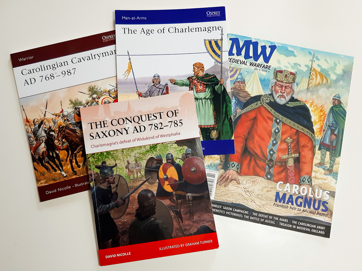 Im Vergleich zu den relativ reich bebilderten Jahrhunderten des Hoch- und Spätmittelalters ist die frühmittelalterliche Überlieferung dürftig: Illustrationen sind selten, Skulptur und Malerei nur punktuell aussagekräftig, archäologische Funde geben eher Details als komplette "Looks". Literatur ist zwar vorhanden, aber wenn es spezifisch um die Ausrüstung karolingischer Krieger geht, oft schmaler als bei späteren Epochen. Das ist eine Herausforderung, aber auch ein Vorteil: Beim Bemalen bleibt ein gewisser Spielraum, um plausible Variation zu erzeugen, ohne in Widerspruch zu Befunden und zeitgenössischen Darstellungen zu geraten.