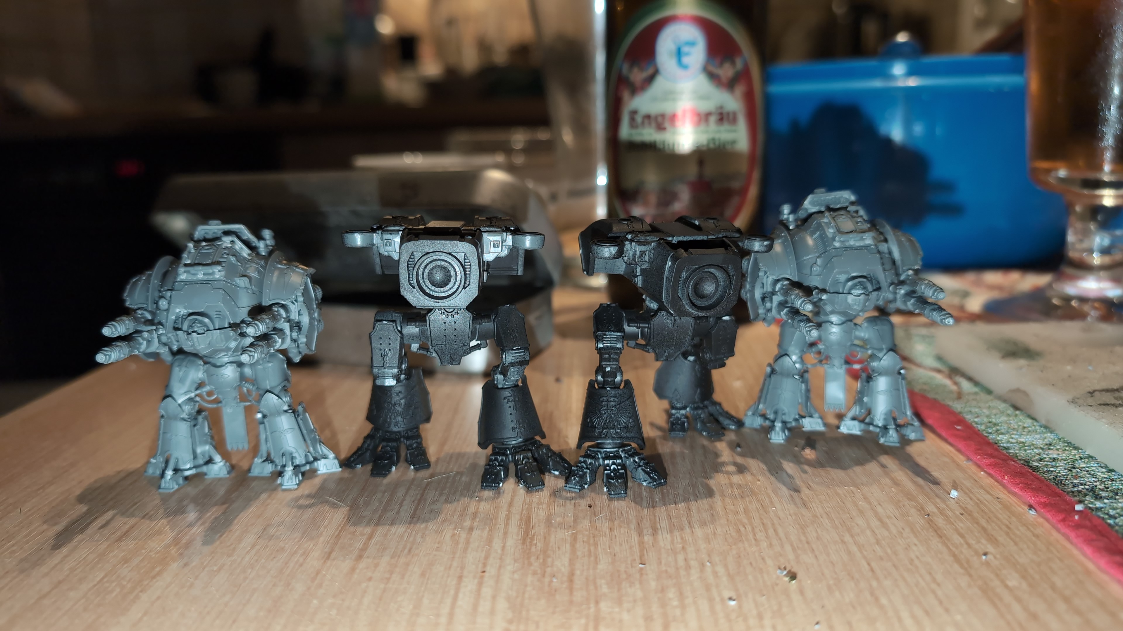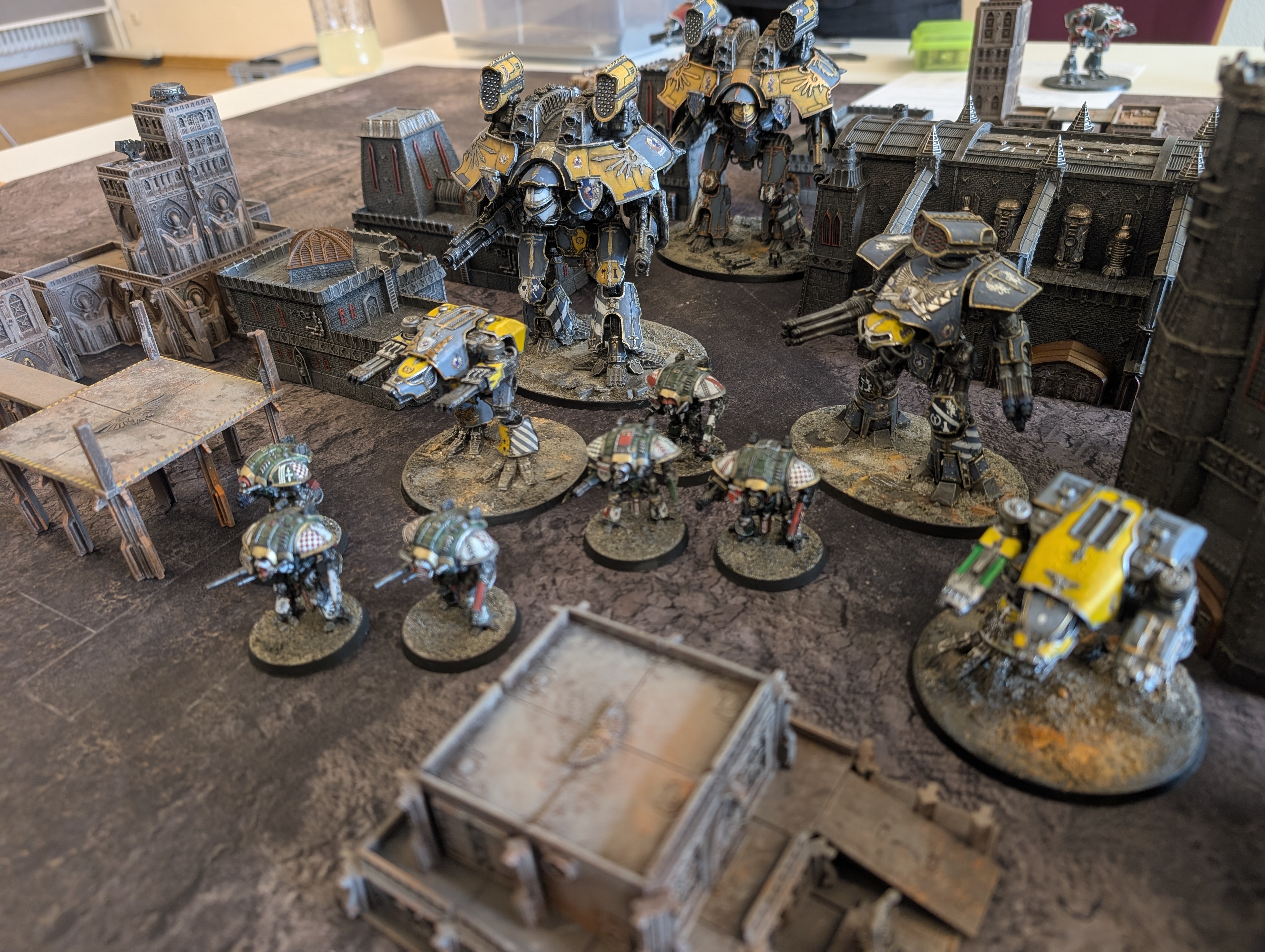 Am Sonntag-Nachmittag durfte die Legion mal zu Spaziergang an die frische Luft. Ein Einführungsspiel mit 3 Titanen. Hat echt Spaß gemacht, tolles regelwerke. Ein bisschen Battlefleet Gothic meets battletech