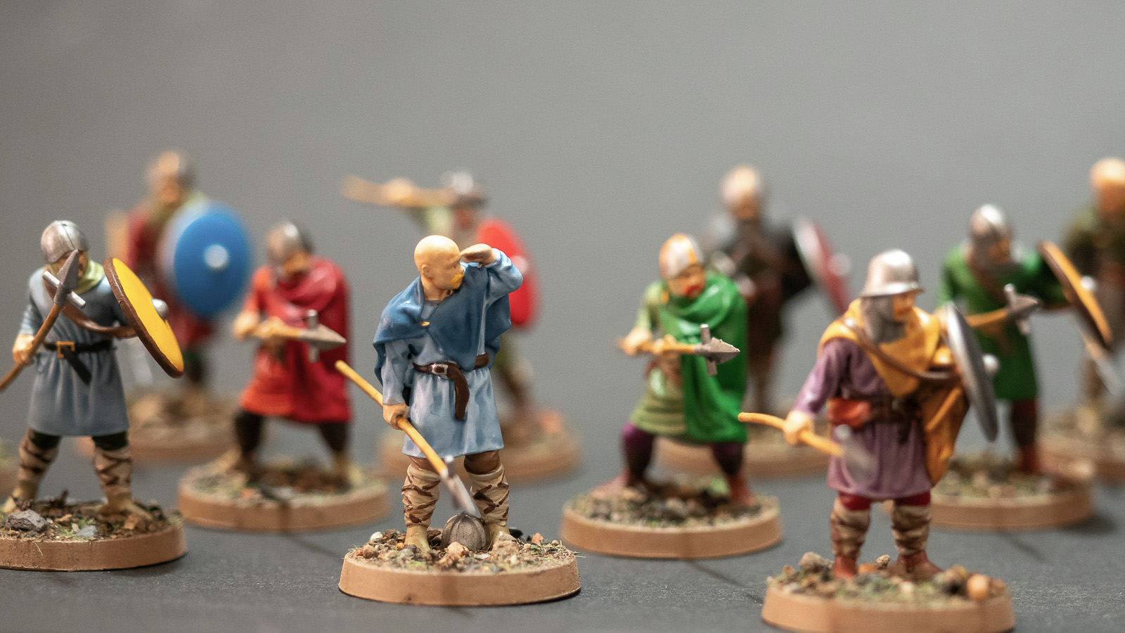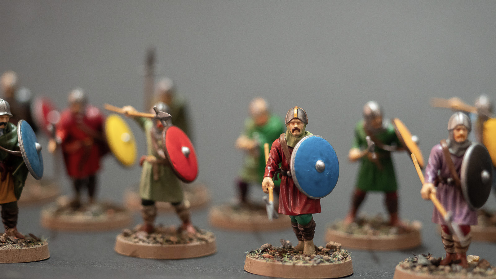 Im Vergleich zu den relativ reich bebilderten Jahrhunderten des Hoch- und Spätmittelalters ist die frühmittelalterliche Überlieferung dürftig: Illustrationen sind selten, Skulptur und Malerei nur punktuell aussagekräftig, archäologische Funde geben eher Details als komplette "Looks". Literatur ist zwar vorhanden, aber wenn es spezifisch um die Ausrüstung karolingischer Krieger geht, oft schmaler als bei späteren Epochen. Das ist eine Herausforderung, aber auch ein Vorteil: Beim Bemalen bleibt ein gewisser Spielraum, um plausible Variation zu erzeugen, ohne in Widerspruch zu Befunden und zeitgenössischen Darstellungen zu geraten.
