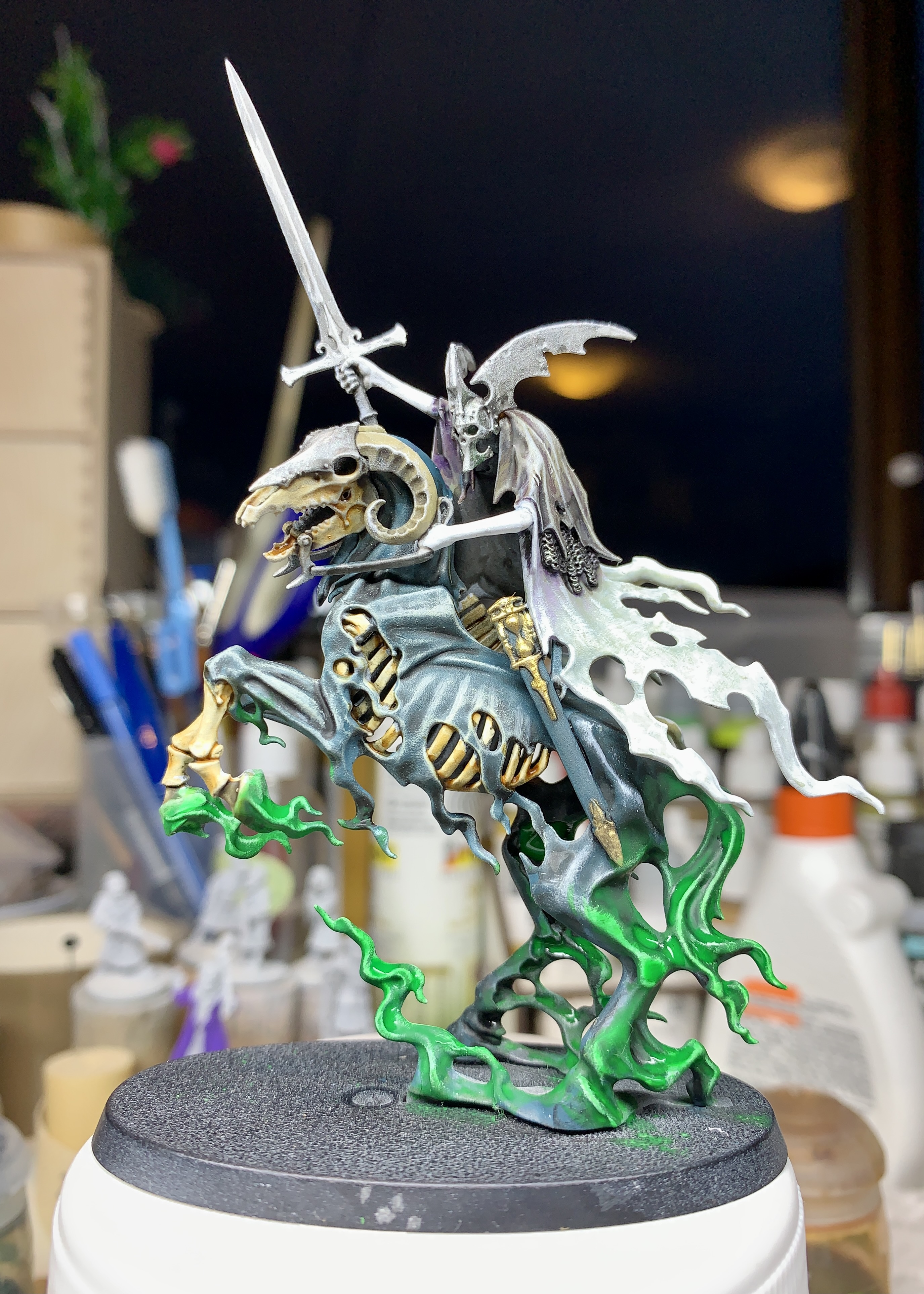 Zur Abwechslung mal AoS - Nighthaunt. Ganz andere Malerei, da muss ich mich erst mal an die Figuren "heran tasten", mal sehen, ob das mit mir un dGW in diesem Leben noch mal etwas wird. Die Nighthaunt sind einige der wenigen Miniaturen von GW, die mir gefallen.