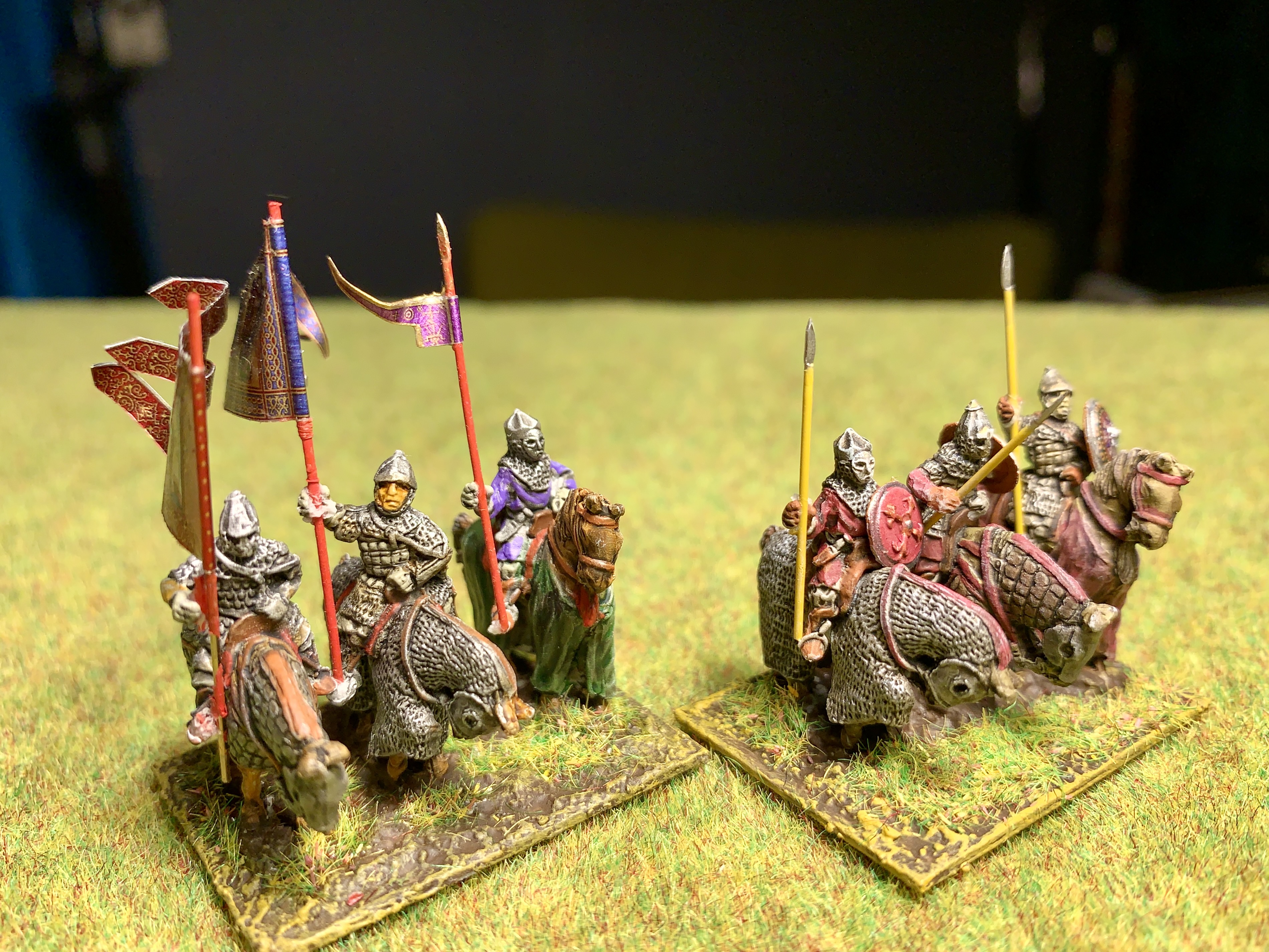 Ich hab noch ein paar russische Sp(I) und Ps(O) von Donnington - die Milrlitonen sind recht schlank gehalten und größer als die Essex - abgesehen davon waren insbesondere die Pferde eine "Flash Orgie", die Formen scheinen etwas "ausgenudelt" zu sein - davon abgesehen aber hübsche und halbwegs historisch korrekte Figuren. Die russ. Modell Vielfalt bei Mirliton ist auch recht begrenzt, weswegen ich für die Cav(S) zum besseren Unterscheiden Ghulams genommen hab, wobei wohl höchstens die reichsten Adligen (teil-)gepanzerte Gäule hatten.