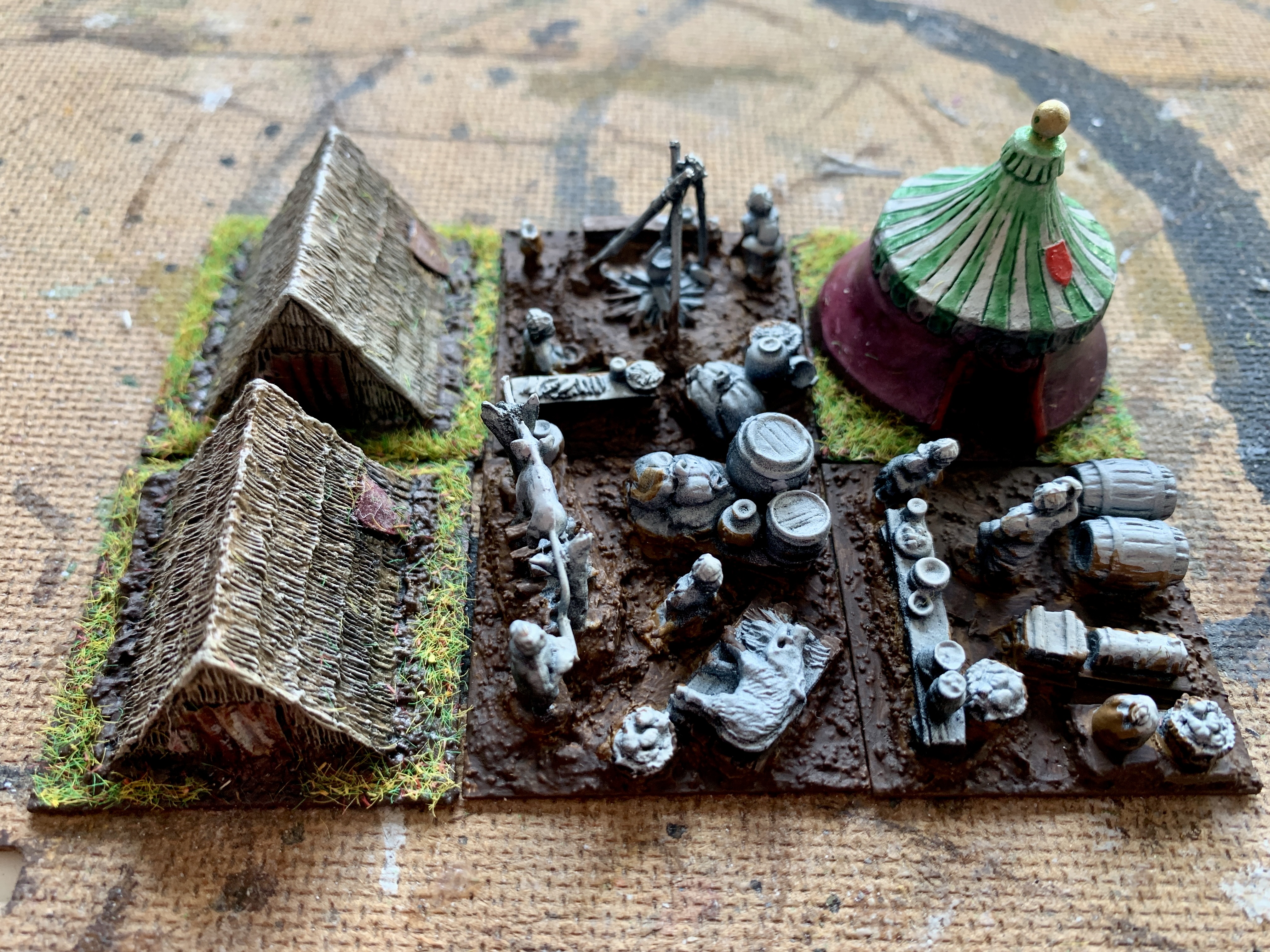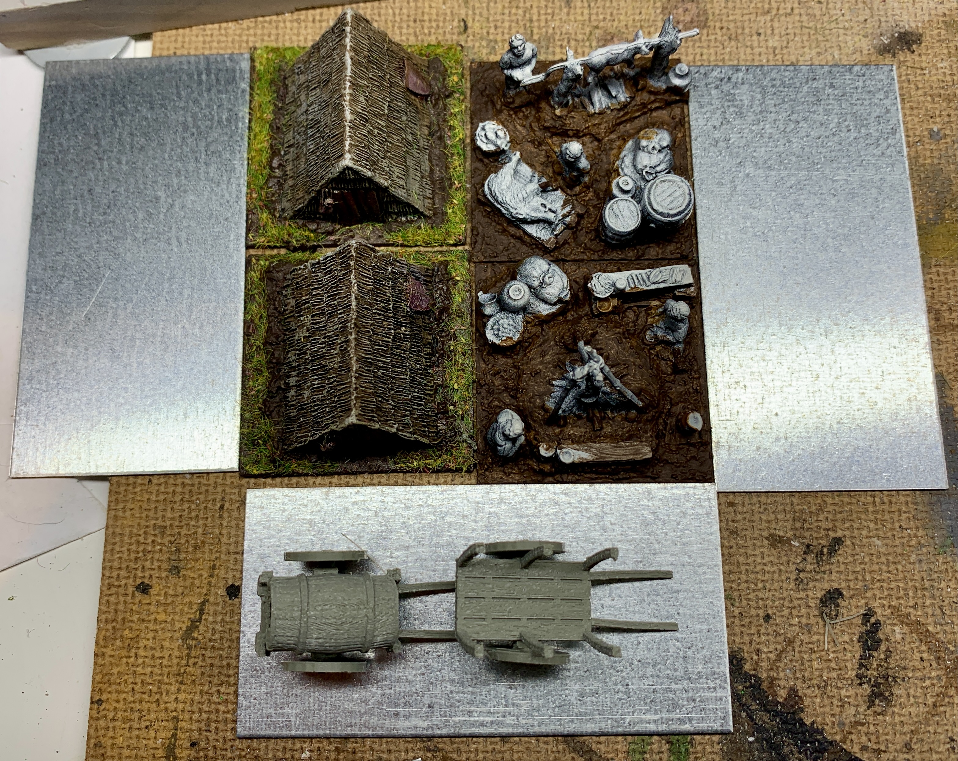 Aktuell in der Mache bzw Fertigstellung noch das Camp Bge (O), aber es fehlt noch das "waggon laager" TF - ich drucke aktuell ein paar Karren, siehe Bild. Was das basing angeht: wäre das so zulässig