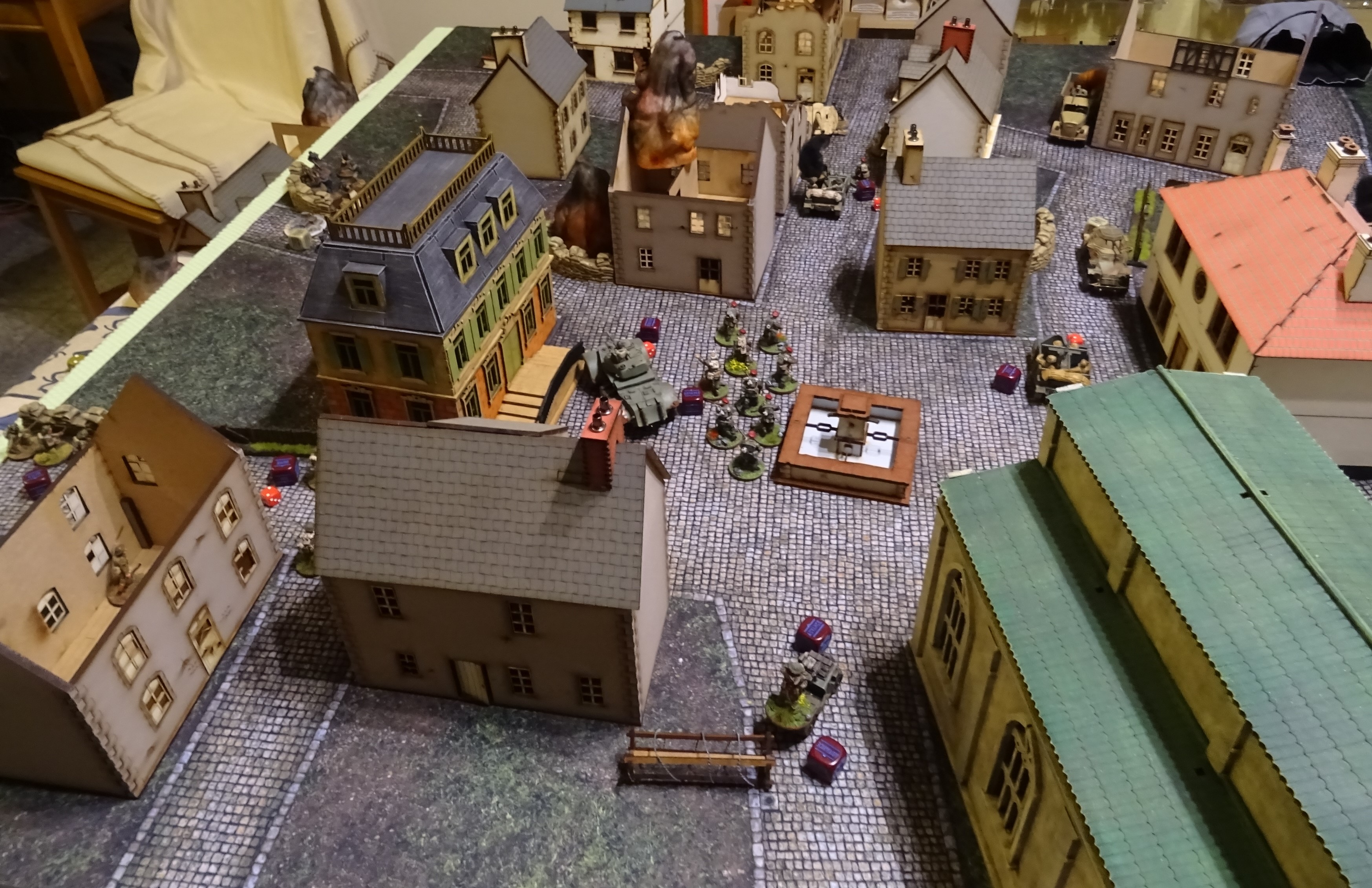 Hier ereignete sich nichts viel. Die Briten ergriffen die Initiative und die Deutschen mussten entweder Ihrer Aufklärerfähigkeit (SDKfz222) in Anspruch nehmen oder die Köpfe einziehen.