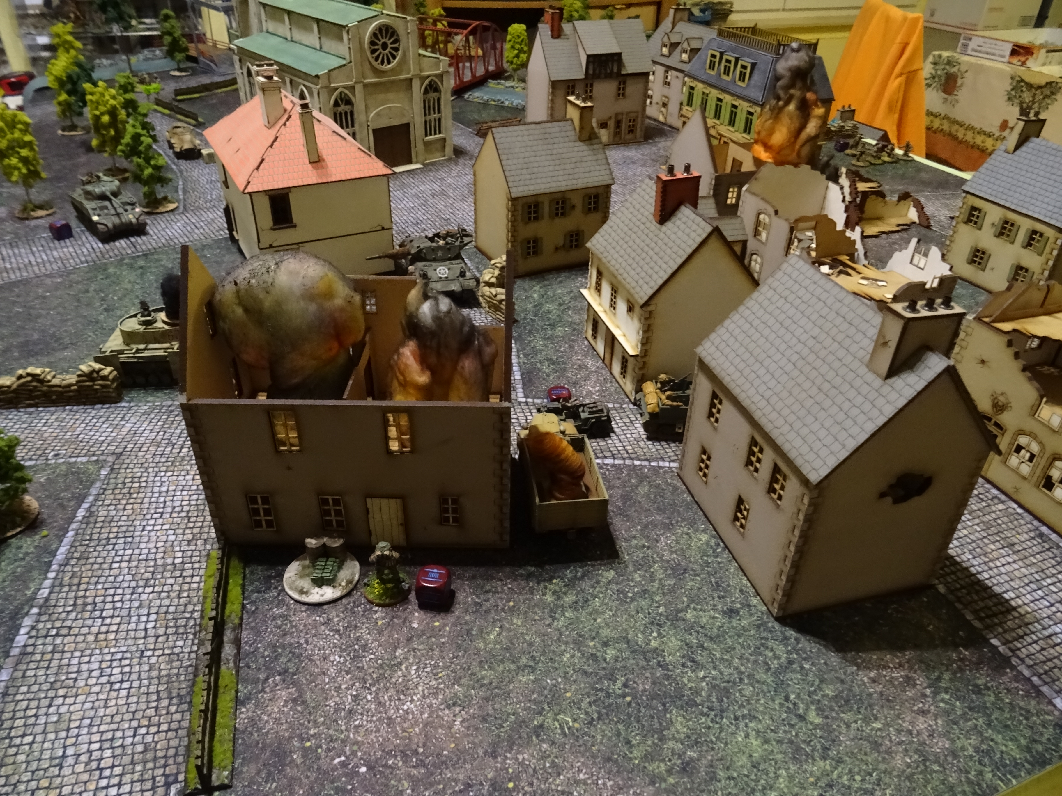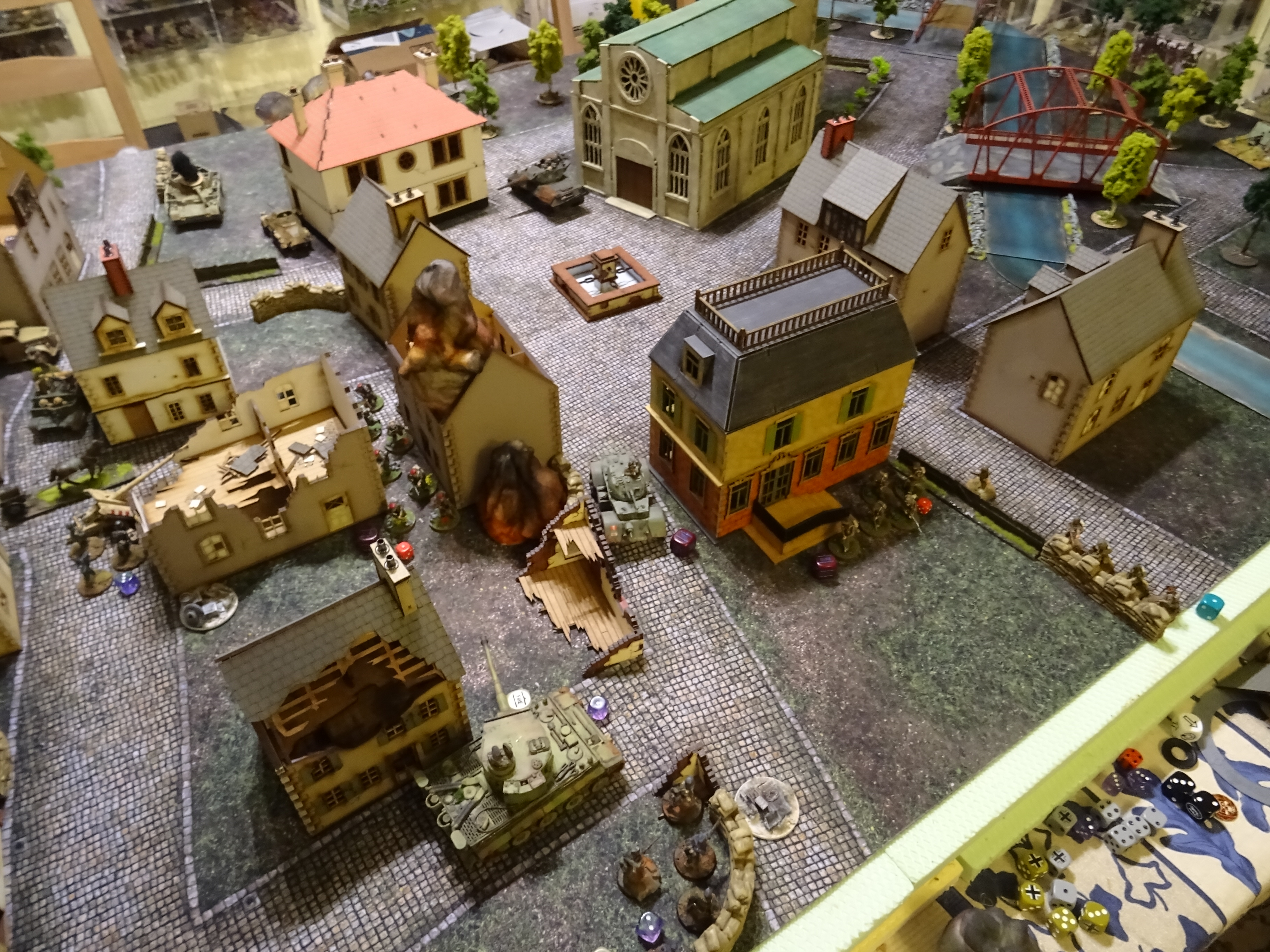 Der Tiger wurde vom Cromwell getroffen, das ausgebrochene Feuer konnte jedoch gelöscht werden. Beim anschließenden Test um in den Angriff zu gehen versagten die Nerven der Tiger Besatzung jedoch und der Tiger zog sich etwas zurück. Dadurch konnte die die Osttruppen aus dem Hinterhalt Ihre Panzerfaust auf den Staghound abschießen. Jedoch ohne Erfolg.
