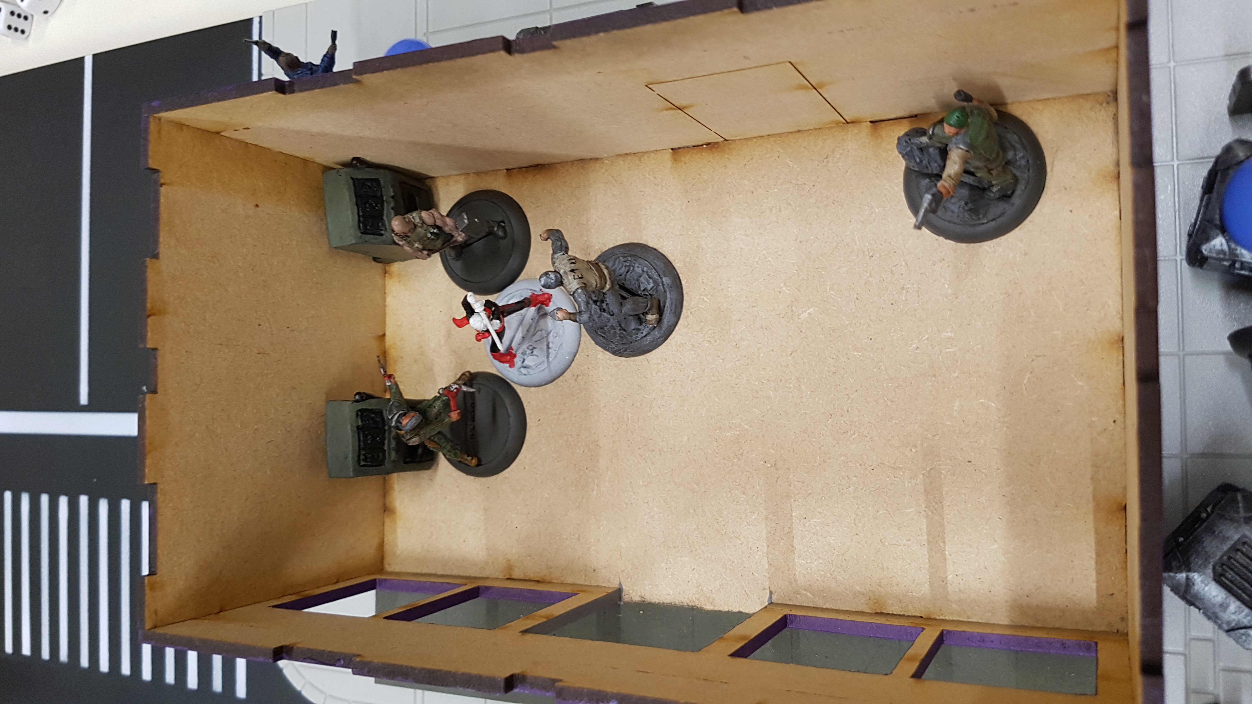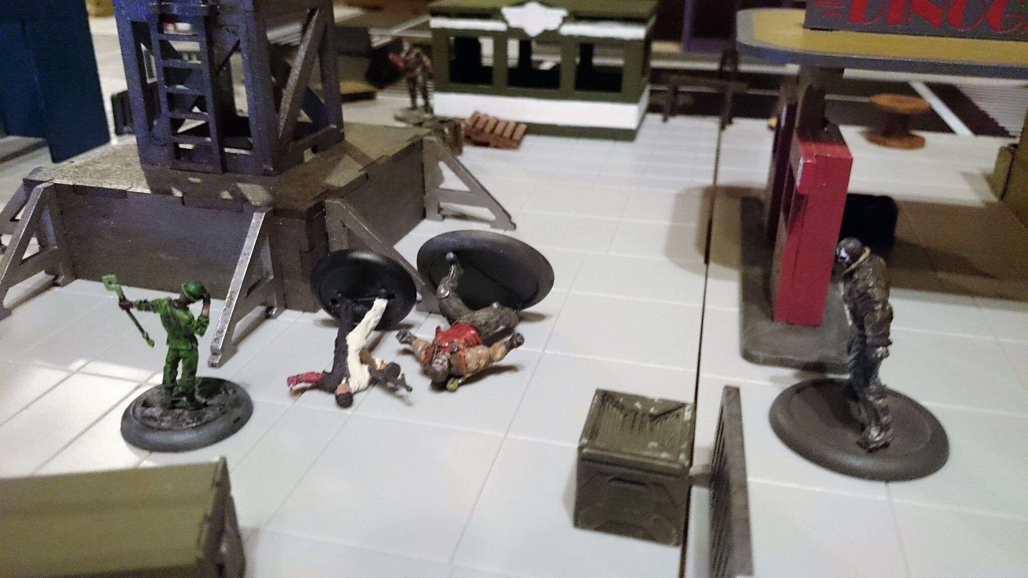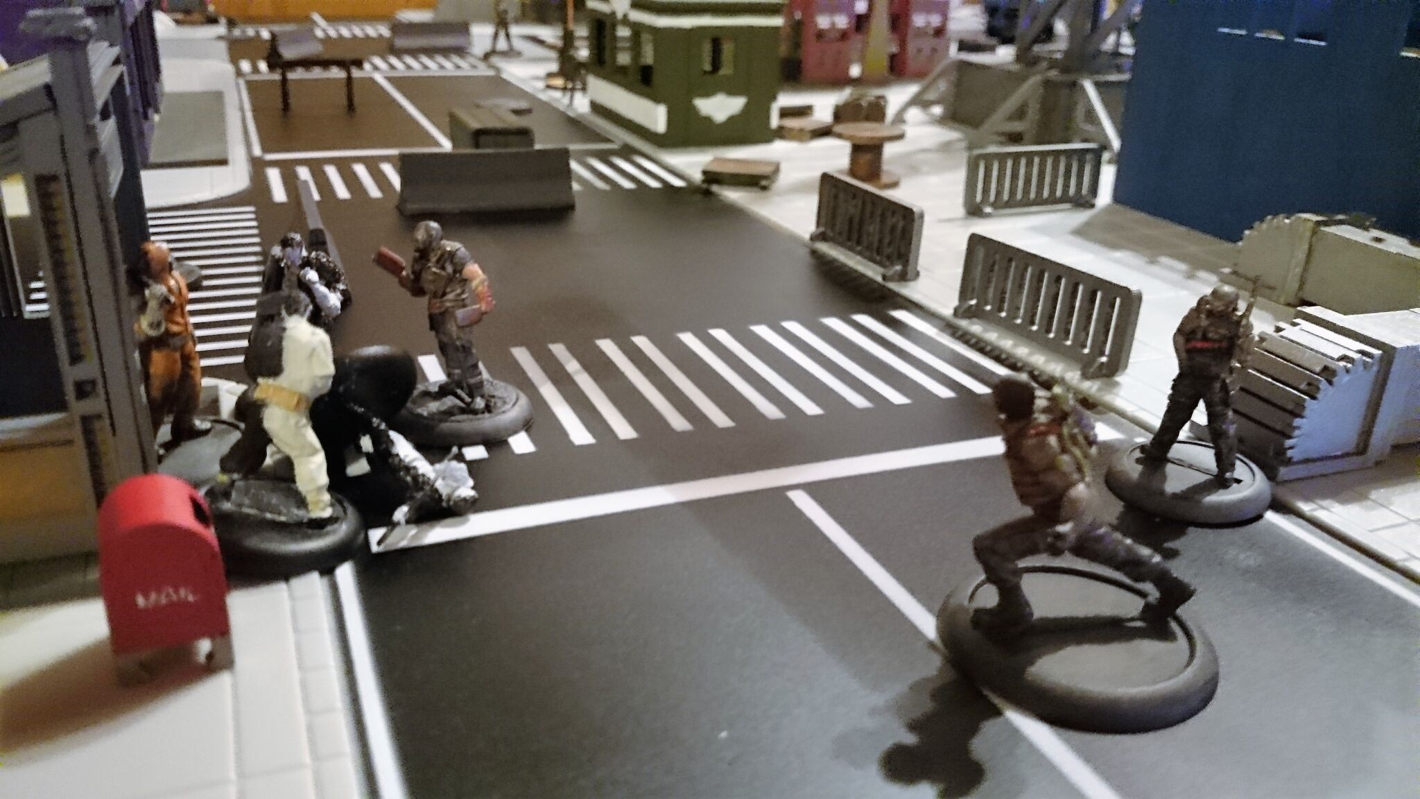 Das Spielfeld: Die Bösen betreten das Feld: Banes Handlanger befreien einen Gefangenen aus dem S.W.A.T. Auto: Und treten mit der einen oder anderen zwielichtigen Person in Kontakt: Verteilt rücken die Angreifer vor: Diggle konnte sich eines Angreifers erfolgreich erwehren, doch der Nächste kommt schon angerannt: Der Serverraum steht kurz vor der Erstürmung... als Batman auf den Plan tritt: Jedoch kann nicht verhindert werden, dass Katana, welche den Serverraum beschützt, überwältigt wird: A.R.G.U.S. bleibt nichts anderes übrig, als die Server zum Schutz herunterzufahren.