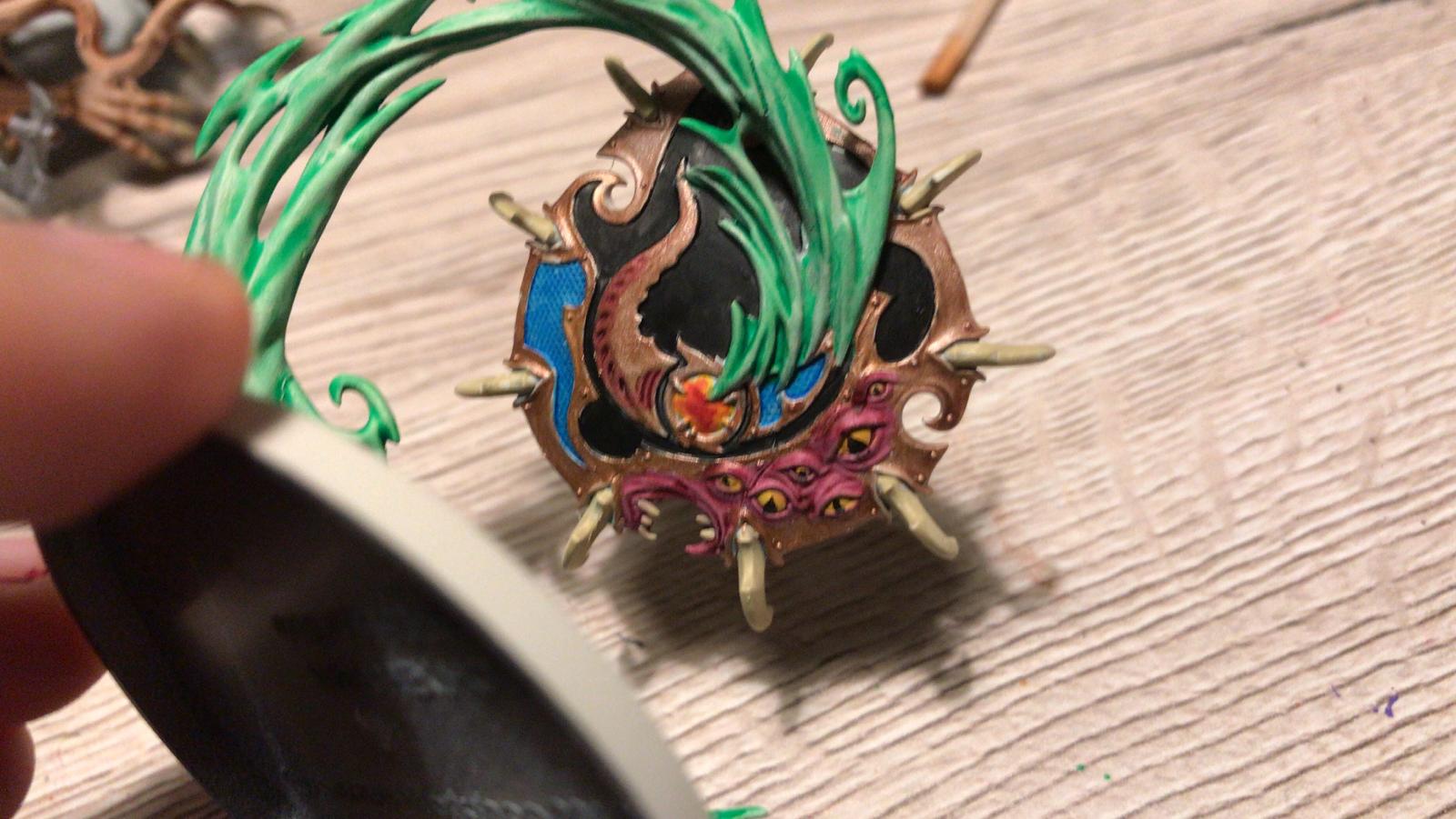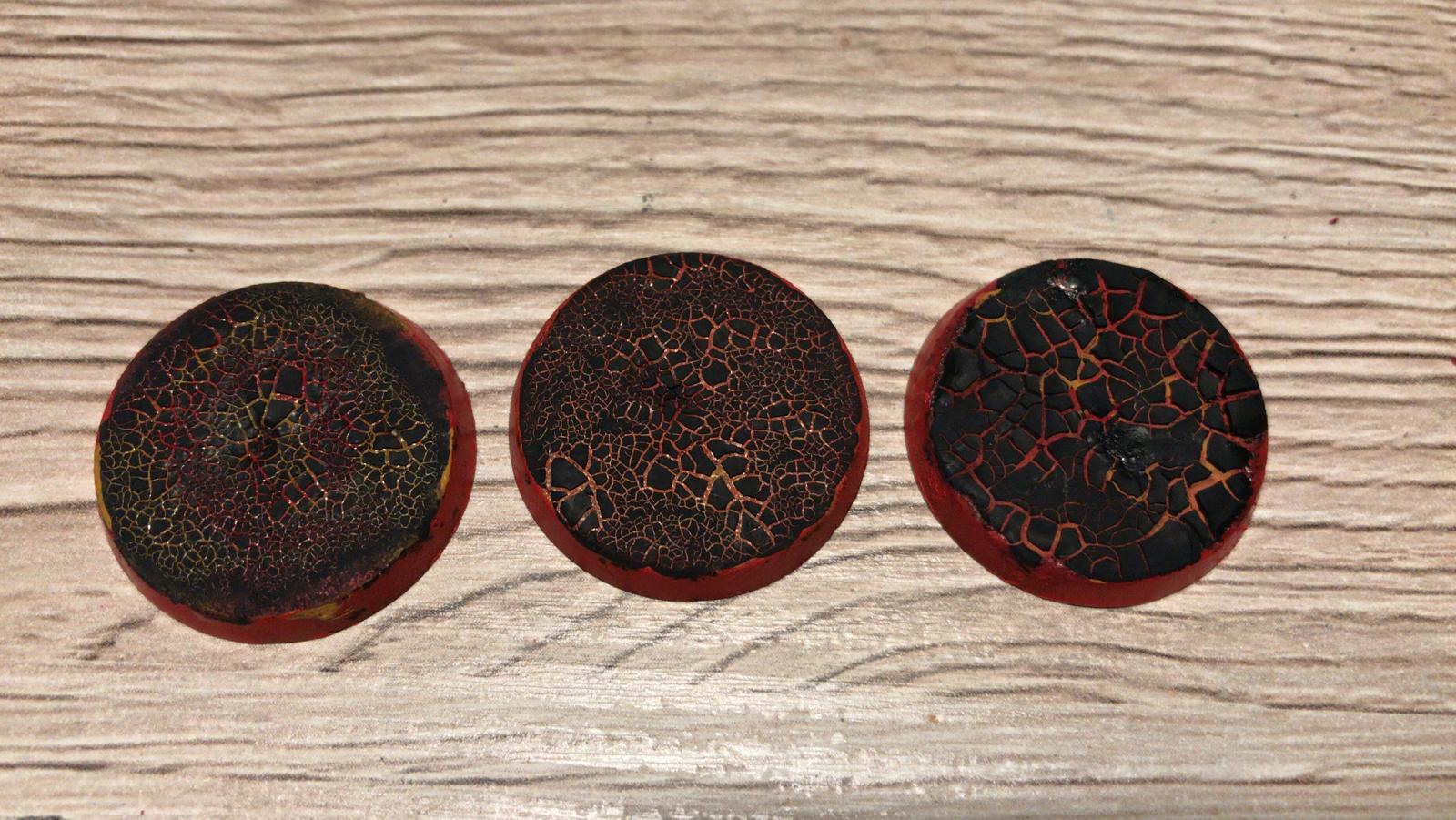 Das hab ich natürlich schon gemacht, dass die Farben drunter sind. Hab auch eigentlich ziemlich viel drauf gespachtelt, am Rand hat es auch ein bisschen funktioniert. Vielleicht braucht das einfach ein paar Stunden..? der Plan war alle Dämonenbases so zu machen. Da muss ich wohl noch mehr rum probieren bis es so aussieht wie auf den Bildern bei Google... hoffentlich kann man das mit dem Messer abkratzen von der Changecaster Base :wall