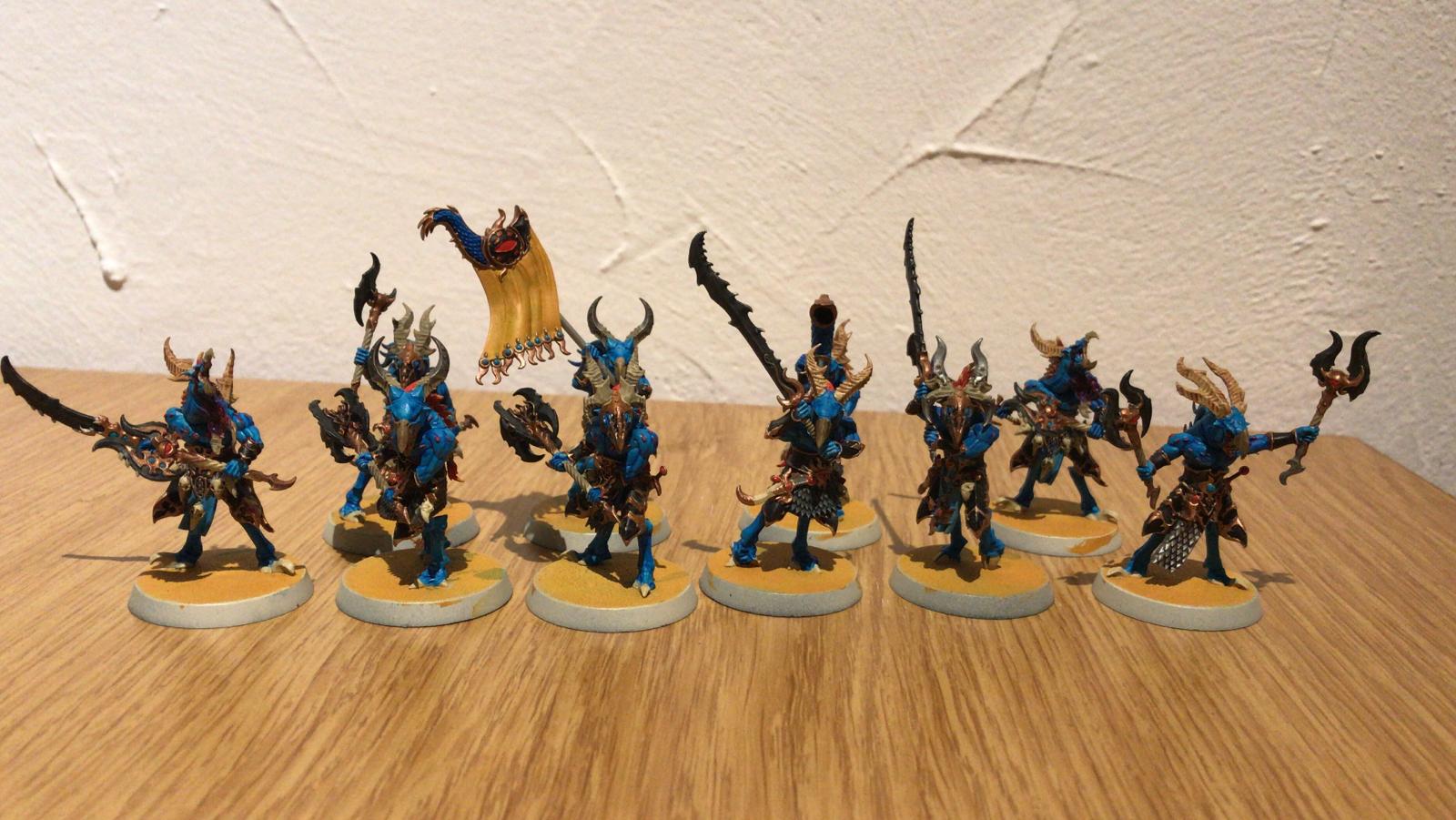 Die ersten 10 Tzaangor sind jetzt auch Startbereit mit einem Icon Bearer, einem Brayhorn, 2 Mutants, 4 Greatblades der Twistbray mit Paired Savage Blades und ein normaler Tzaangor mit Paired Savage Blades.