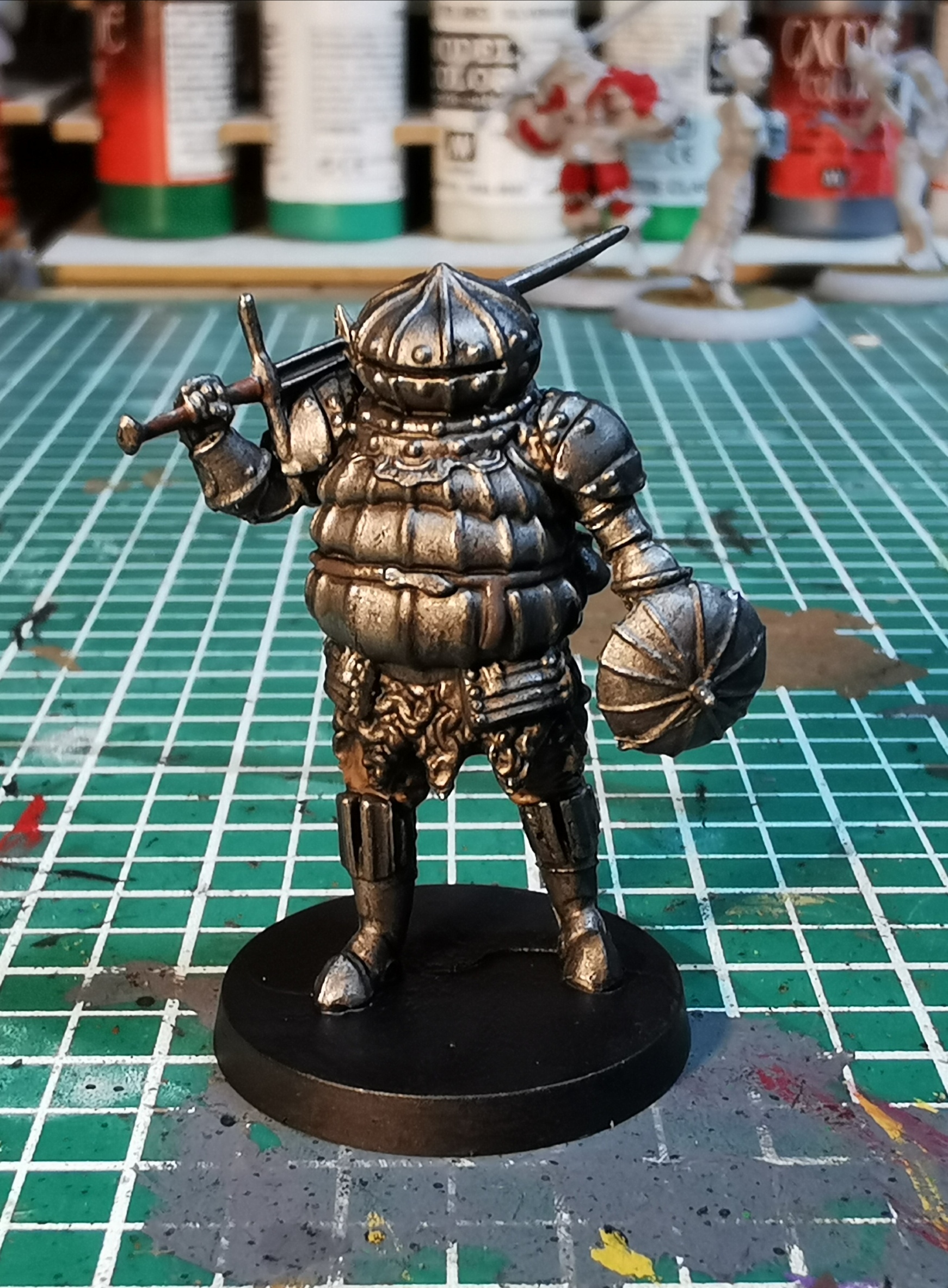 Der kommt übrigens aus der Dark Souls Spielreihe und gehört zu dem Darks Souls Brettspiel, das ich auf der Cavecon präsentiere...