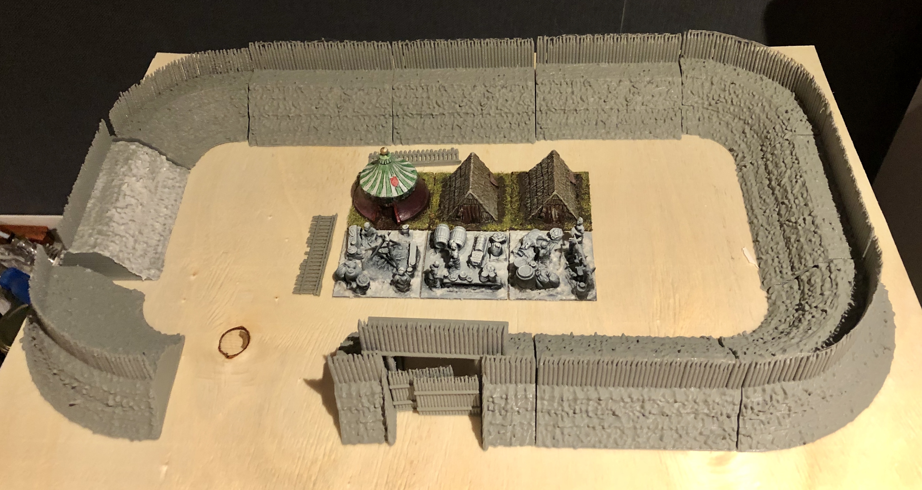 Nun hab ich recht hübsche Modelle von 3dprintScenery, die Wälle sind jeweils nicht ganz 8cm breit - Problem? Was ist so üblich auf den DBMM Spieltischen der alten Welt? BUAf Beulen am Spielfeldrand?