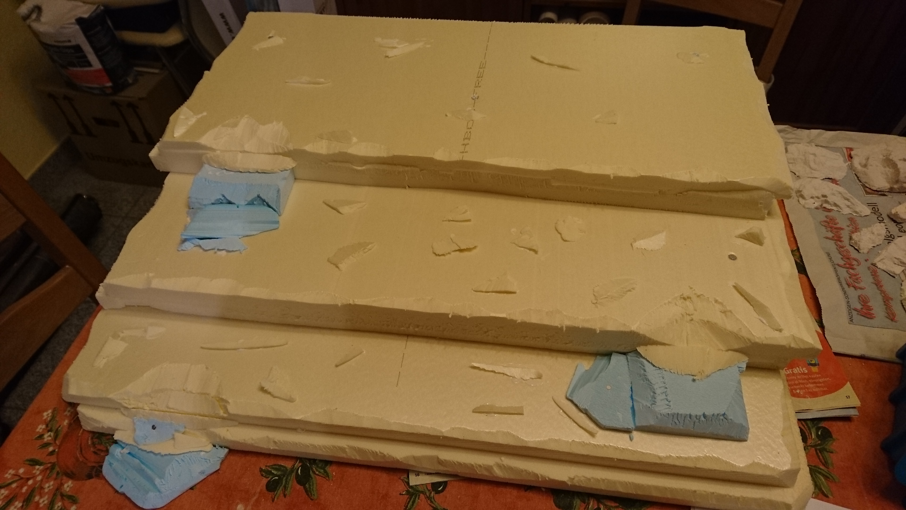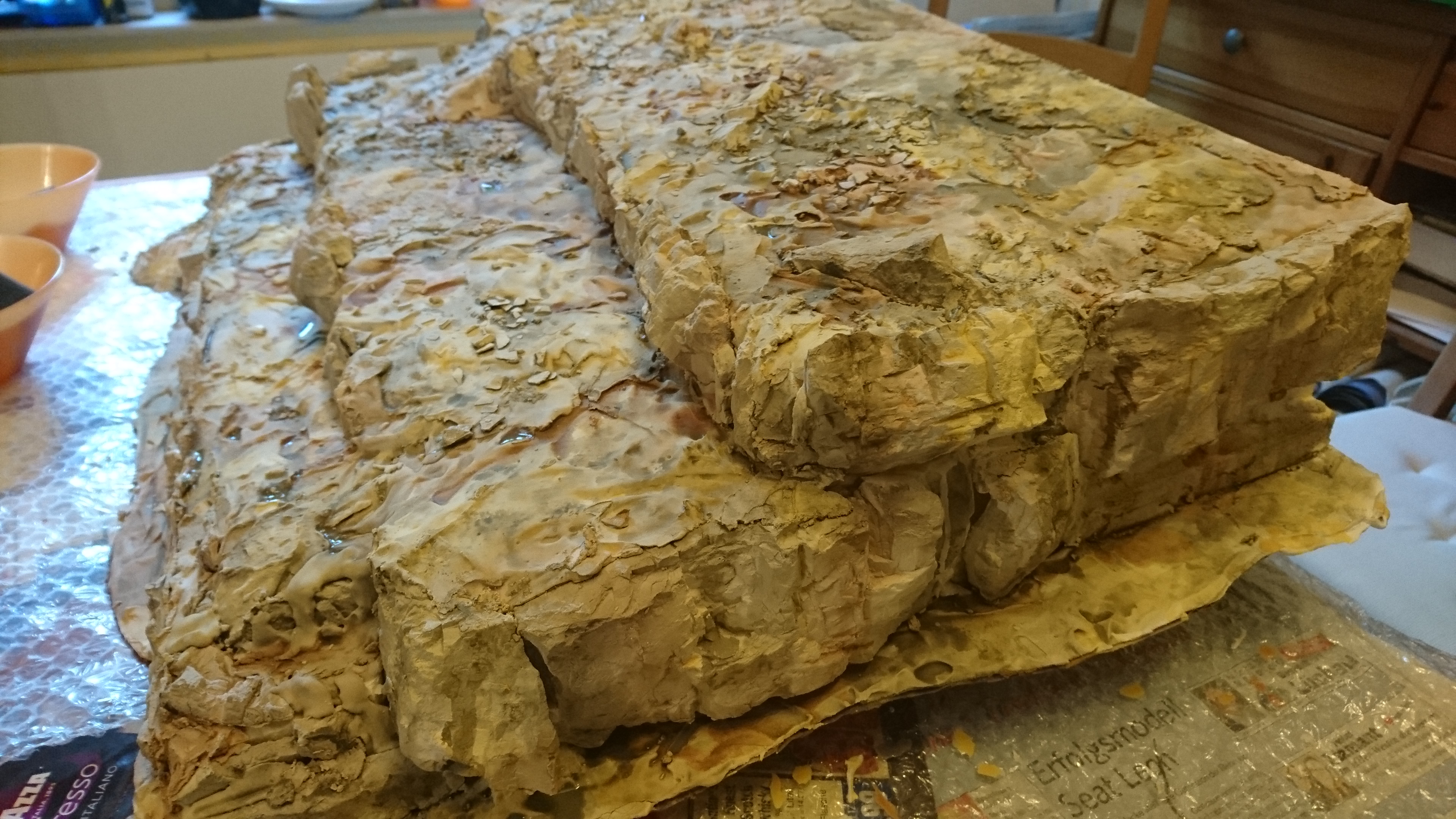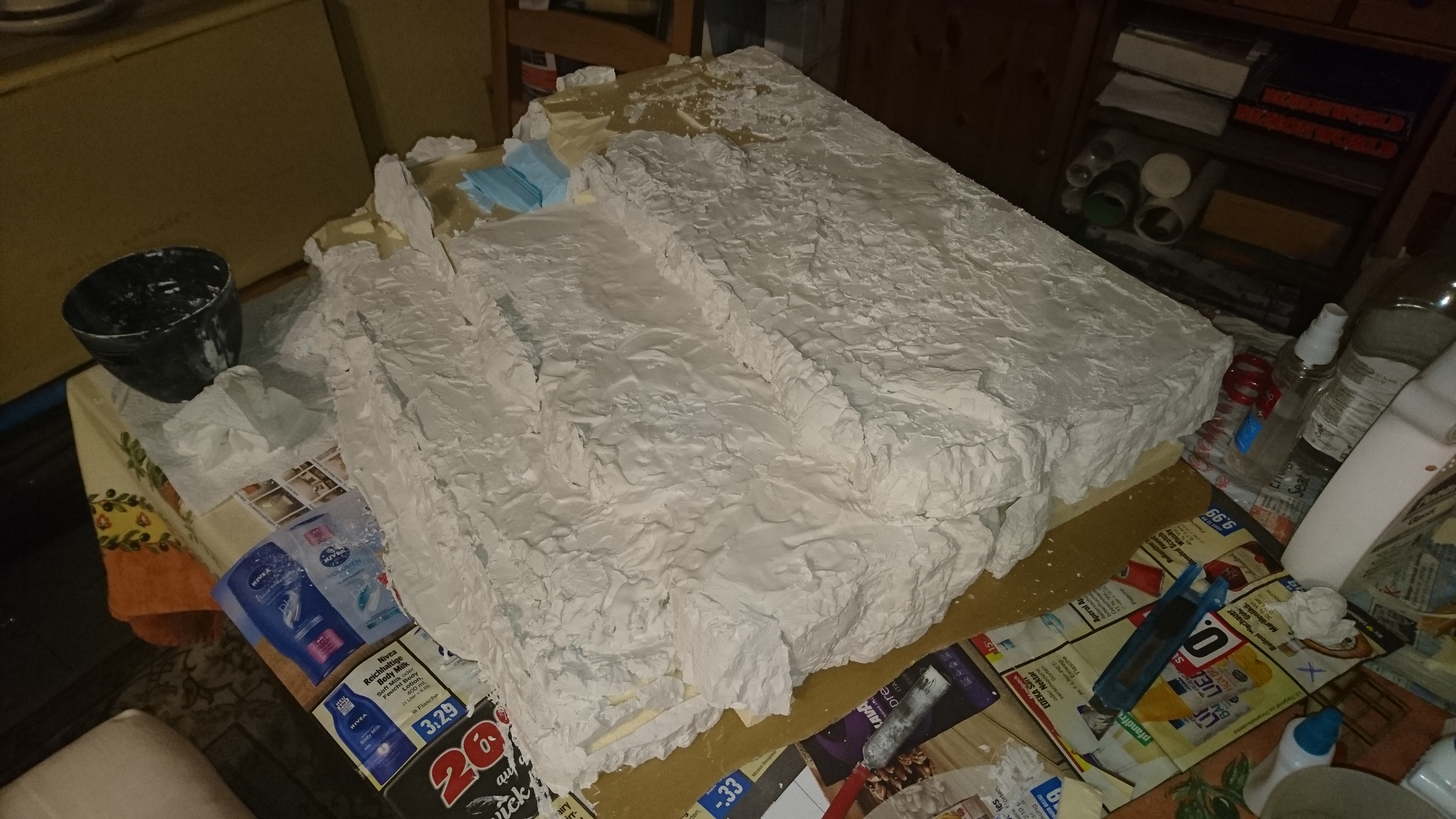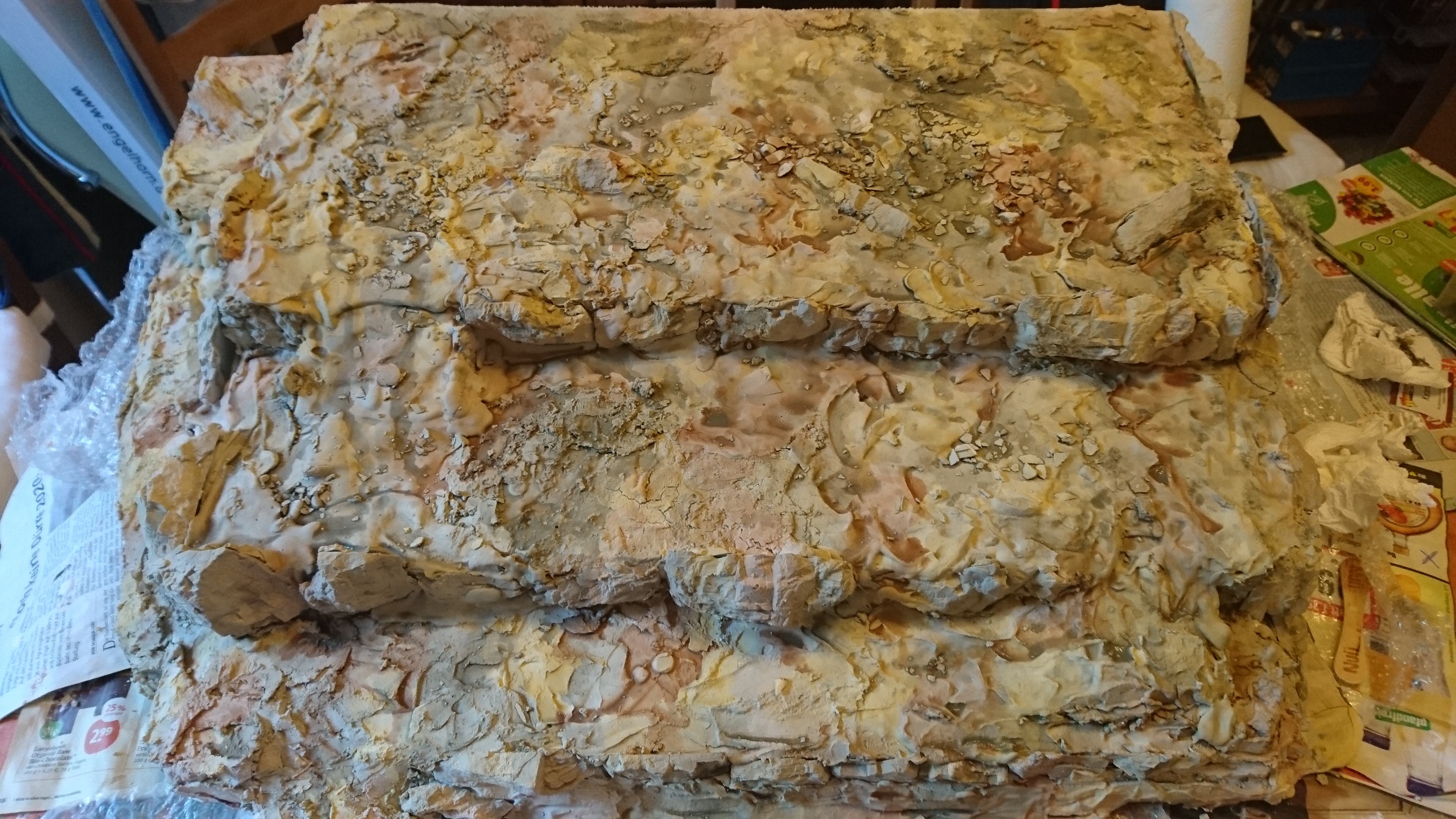 Dann habe ich unzählige Felsbrocken aus Gips gegossen. Hier ungefähr ein Sechstel davon: