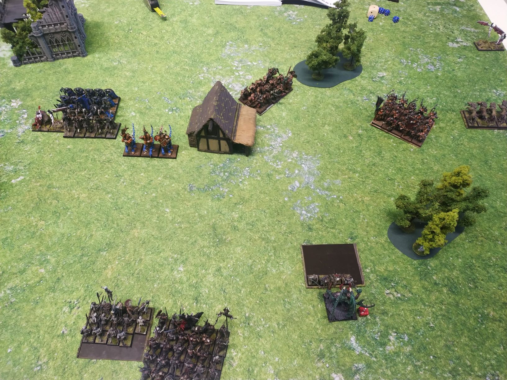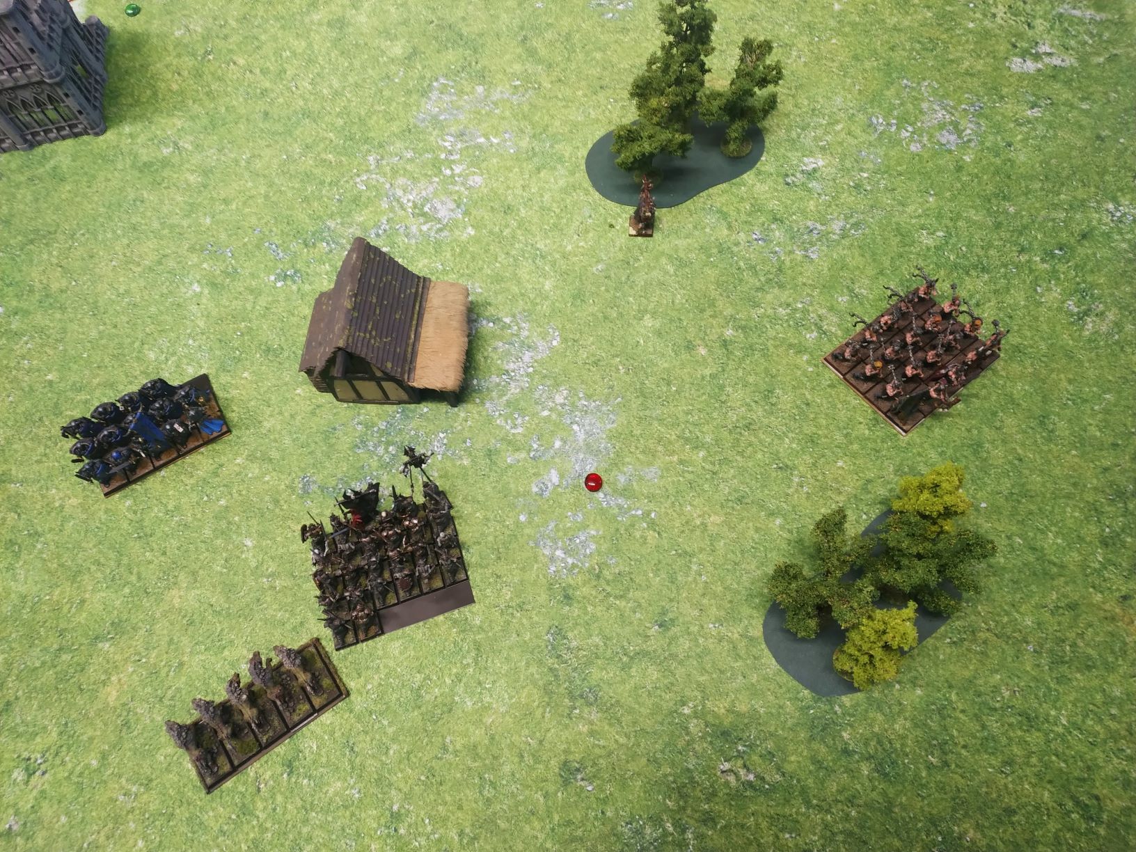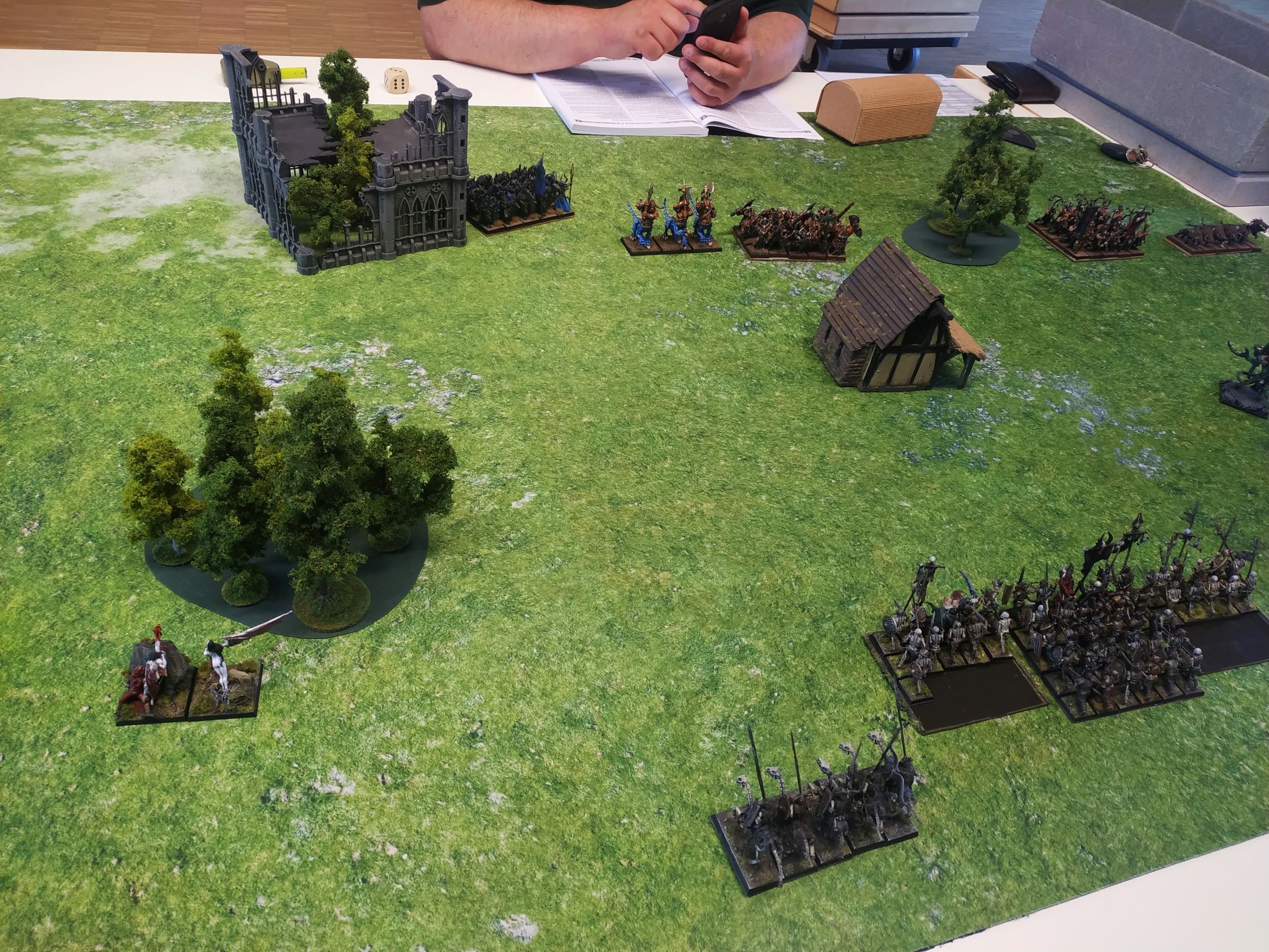 Beide Parteien mehr oder weniger klassisch, die schlagkräftige, schwere Infanterie zentral und auf den Flanken die leichten Einheiten.