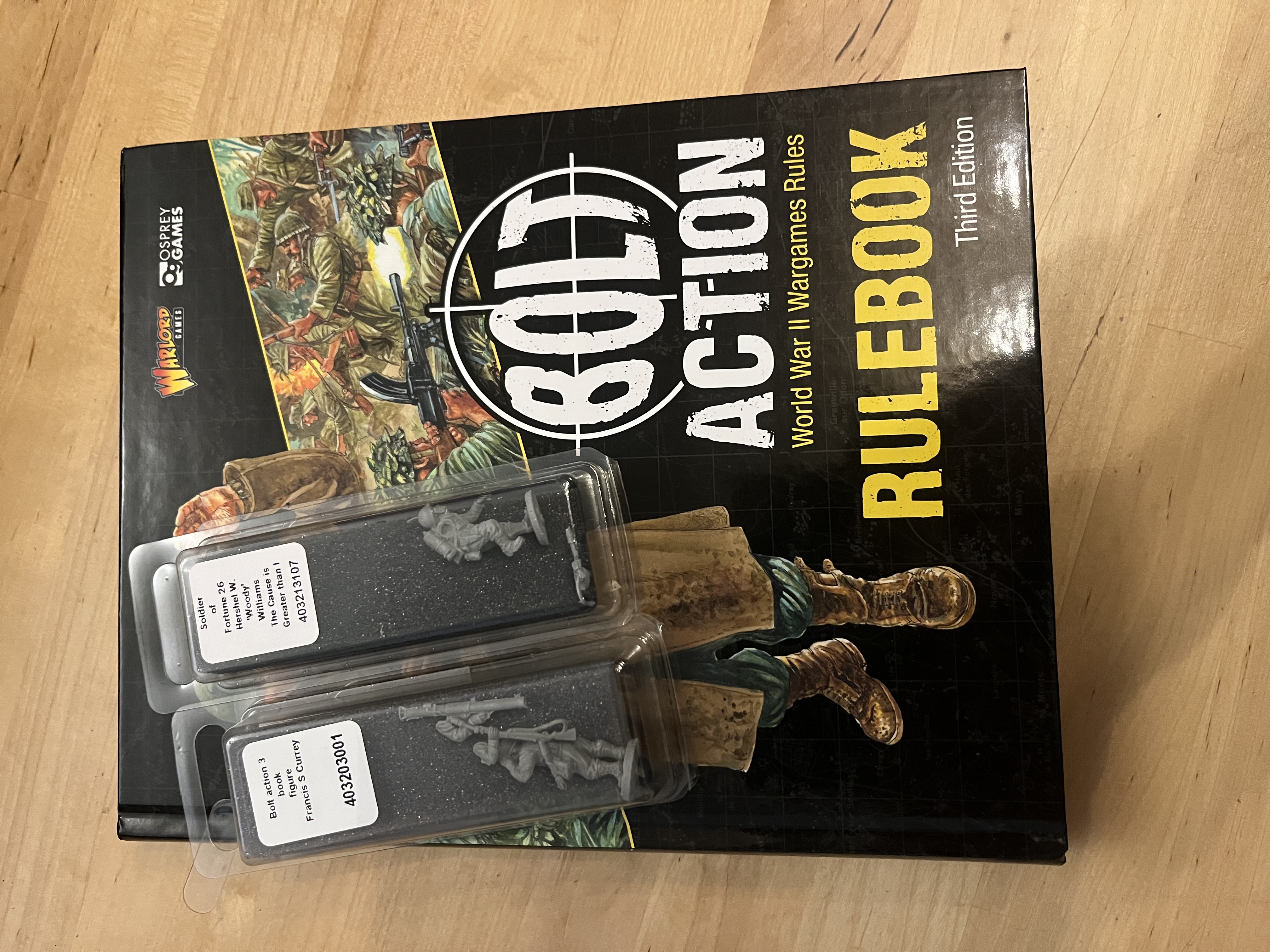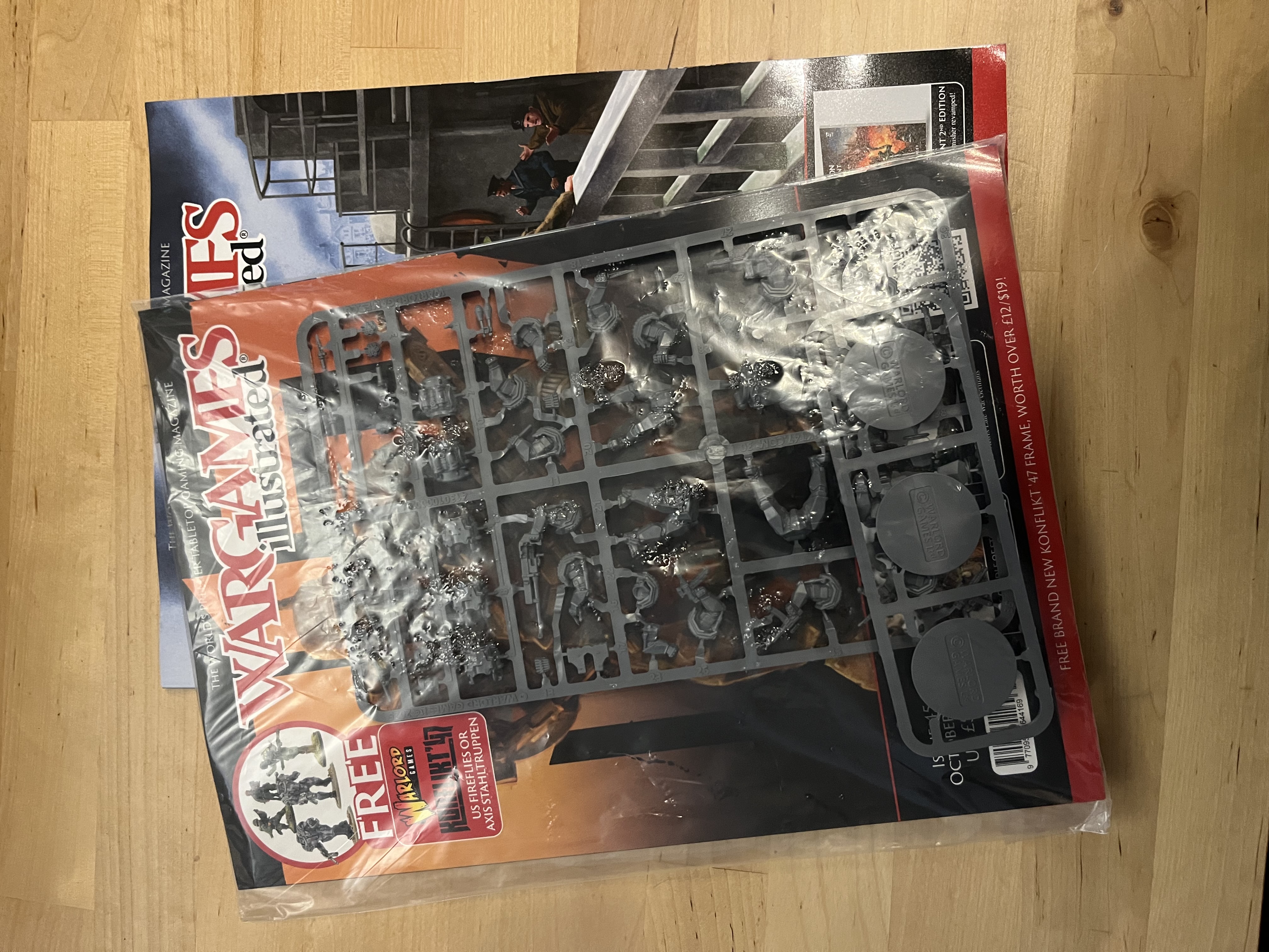 So, da bin ich wieder und total begeistert. Beide Regelwerke sind angekommen, dazu noch die bei den Büchern enthaltenen Figuren sowie der Soldier of Fortune für Sep’25 und die Open Days Figur. Weiterhin 2 Wargmaes Illustrated Magazine und WG hat zu meiner endgültigen Begeisterung noch einen Gussrahmen mit britischen Paras beigelegt. Woher wissen die, dass ich Briten spielen möchte?