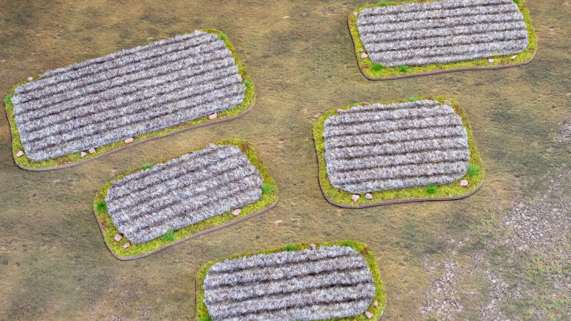 Gepflügte Felder, selbst gebastelt aus einer Ripsfußmatte von Hornbach.