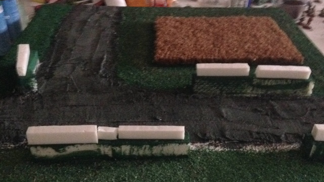 Das mit den Hecken und Mauern seh ich auch so. Einzeln echt besser. MDF-Base, Styrodur drauf, Ästchen rein und Flock drauf.