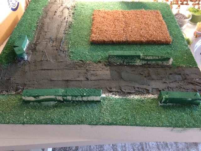 Die Hecken müssen noch beflockt werden, an der ein oder anderen Stelle werden noch Einschläge realisiert und Bäume,Zäune etc.. kommen auch noch hinzu.
