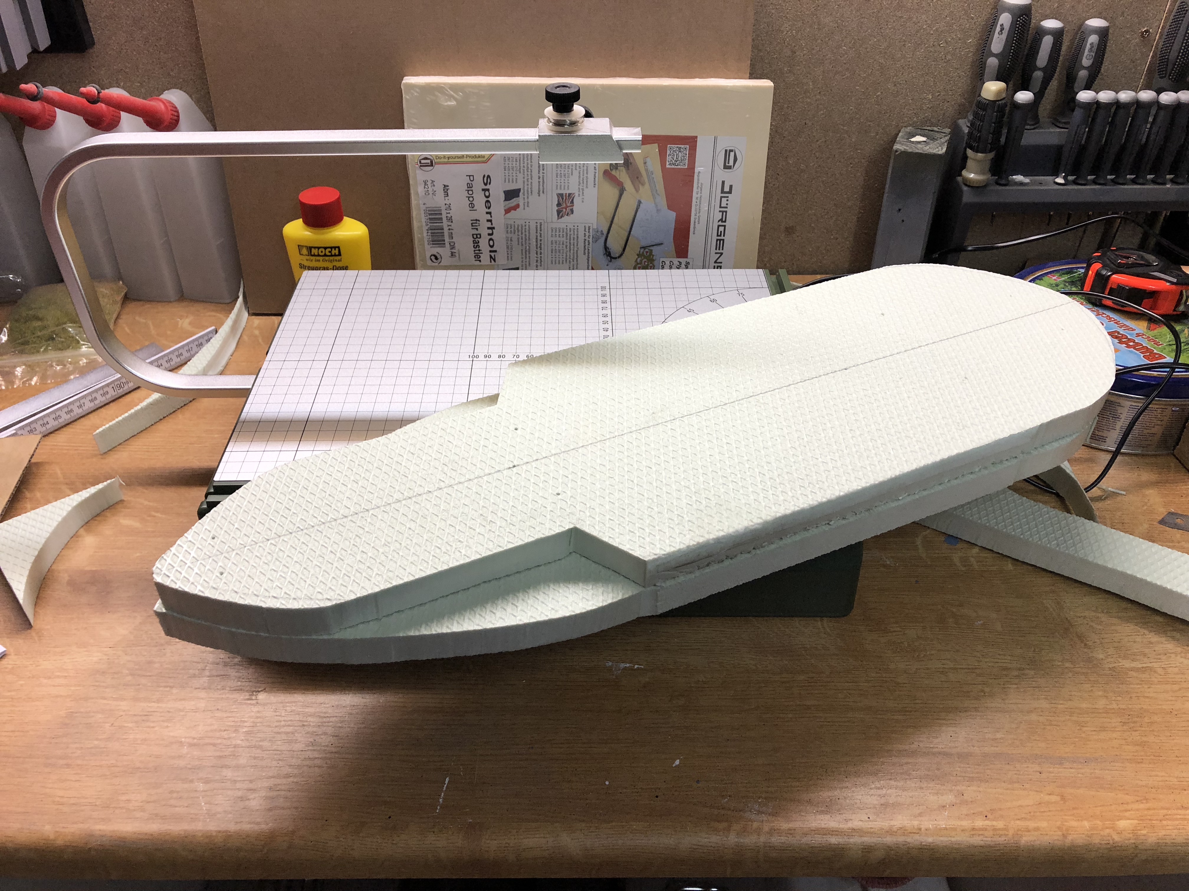 Soweit so theoretisch. ICh dachte daran, den größten Teil aus Styrodur und Foamboard, ggf Balsaholz zu bauen. Ähm.... hat jemand Erfarhung mit sowas? Ich bin ja leider nicht der Handwerker vor dem Herrn.... :oops: