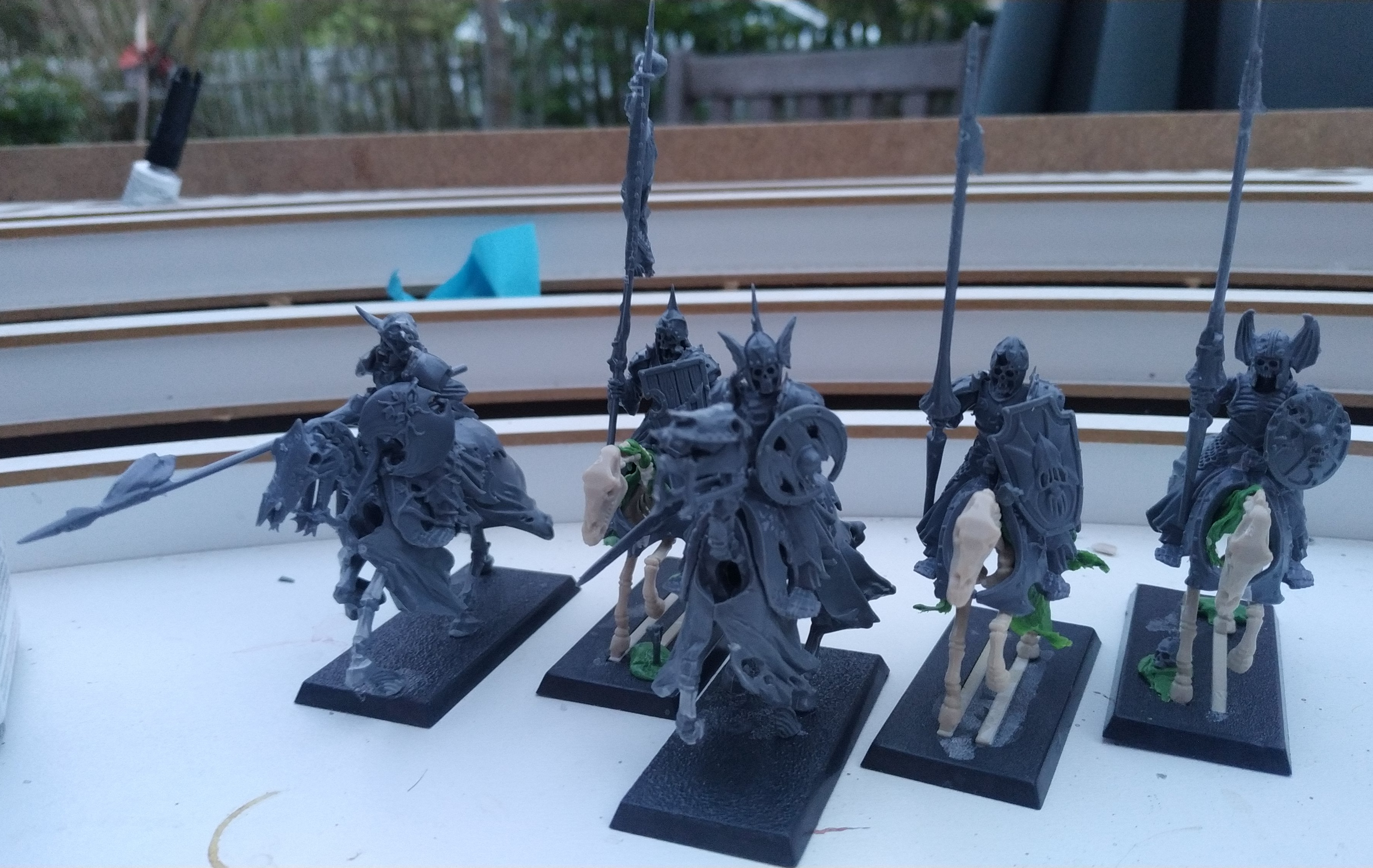 Gerade kamen die Black Knights an, toller Bausatz! Da ich noch alte Skelettpferde habe, werde ich mir direkt zwei Einheiten draus schnitzen! Einmal 5 weitere Ritter sowie Geister-Reiter....