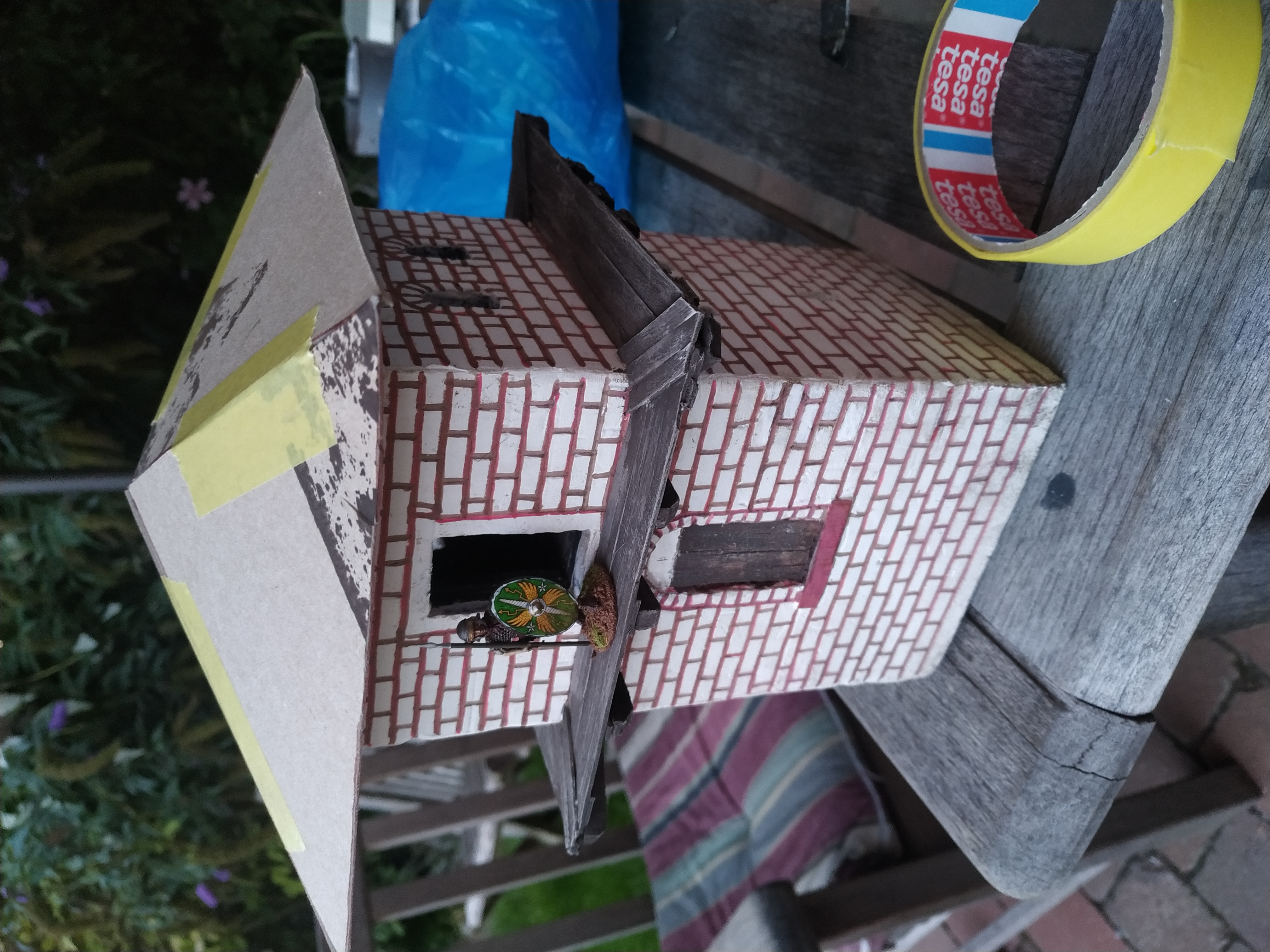 Ja, das Geländer und die Dachschindeln fehlen noch. Und noch diverser anderer Kleinkram... (Germanen, Ochsenkarren usw)