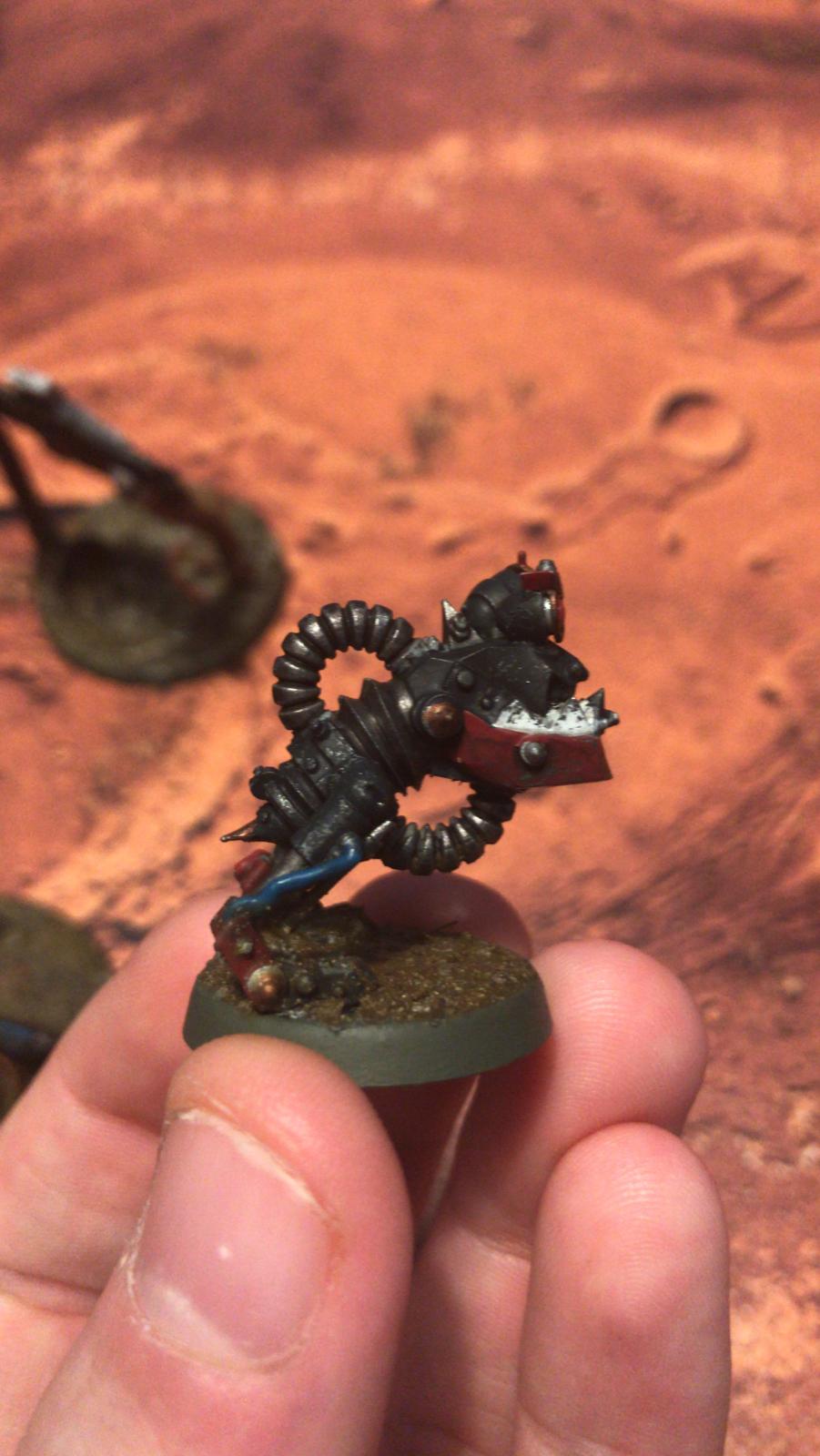 Außerdem mein Weirdboy: Und weil keiner am Model meines Warbosses ist aber ich WYSIWYG haben möchte, ein kleiner Attack Squig der eventuell von einer Forgeworld kommt die eine akute Waaagh Bedrohung überwacht