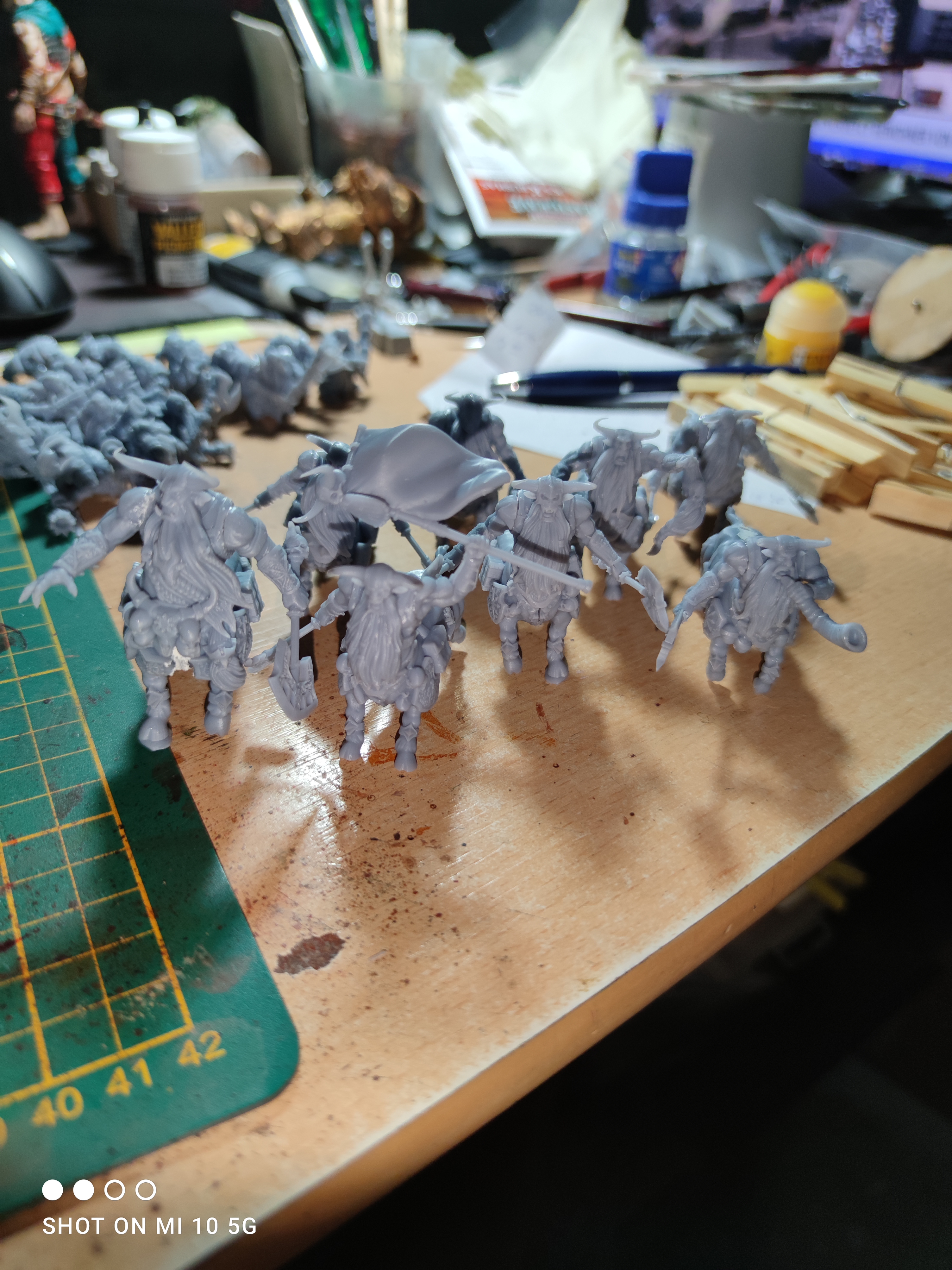 . So das ist aktuell erst mal mein gedrucktes, das sind 20 Infernal Guard noch ohne Kommand, 4 Verschiedene Helden und eine Gruppe mit vollem Kommand Stierzentauren.