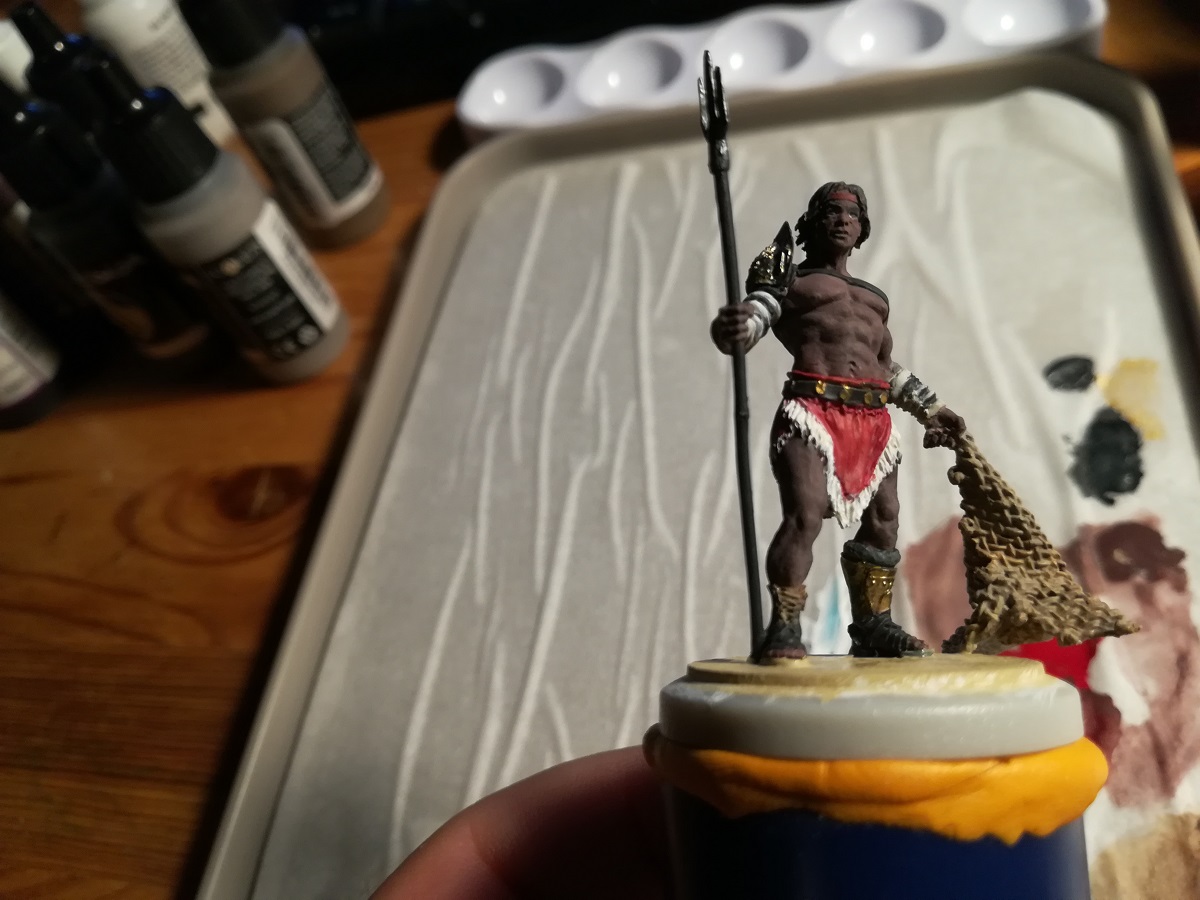 Zuerst sah es irgendwie noch falsch aus (weil ich aus irgendeinem unerfindlichen Grund die Idee hatte, es mit schwarzem Metall zu probieren, aber mit Vallejos Glossy Black passte es dann).