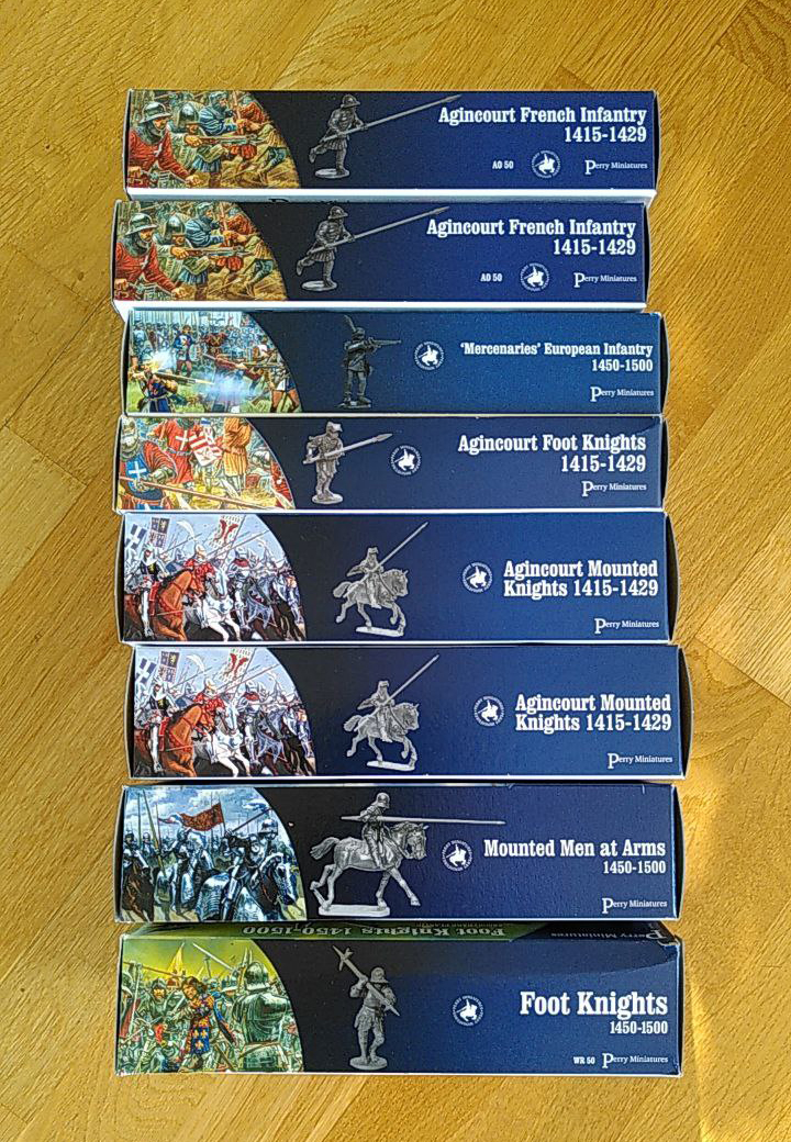 Der erste (und einfachste :roll: ) Schritt für das neue Projekt ist getan: Die Figuren sind bestellt! Ich stelle eine Frankfurter Truppe ca. zur Zeit der Kronberger Fehde (1389) auf, insofern habe ich mich für die Agincourt-Reihe (aus Plastik) von Perry Miniatures entschieden. Geplant ist erst einmal eine standardmäßige, flexibel einsetzbare 24-Punkte-Truppe, bestehend aus: