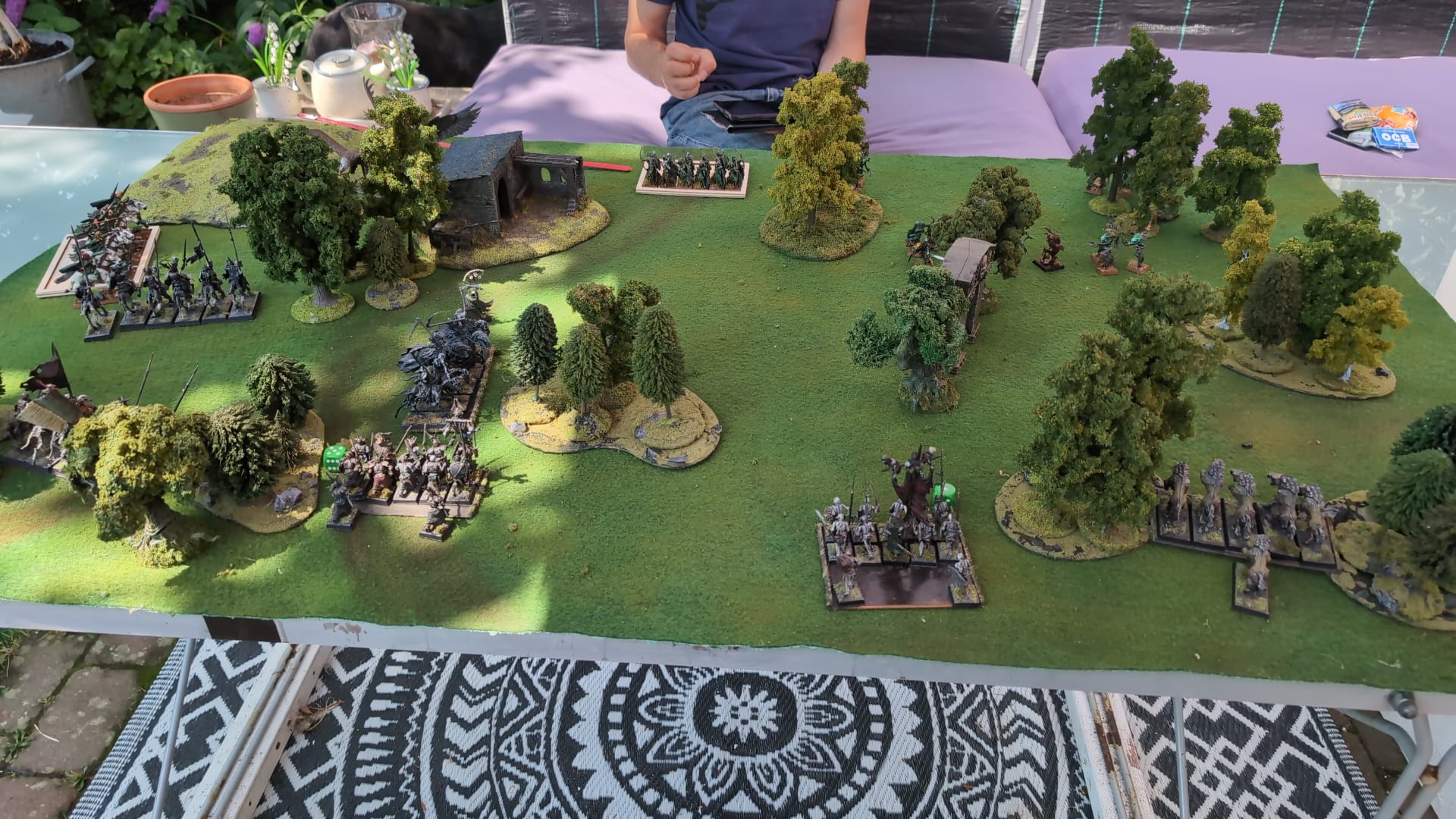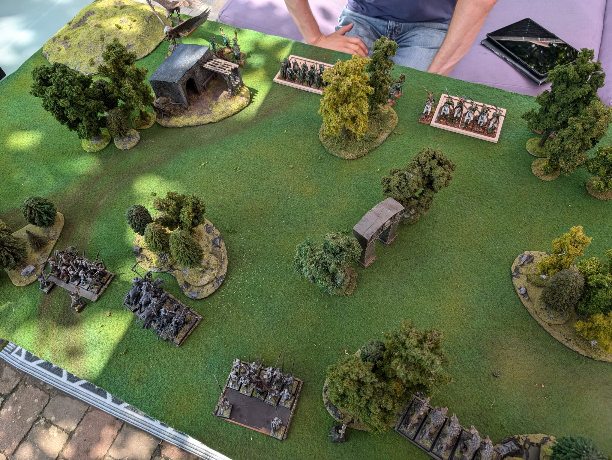 Nach einem Jahr habe ich es am Sonntag Vormittag endlich geschafft, ein Dragon Rampant Testspiel mit Untoten und Waldelfen zu machen.