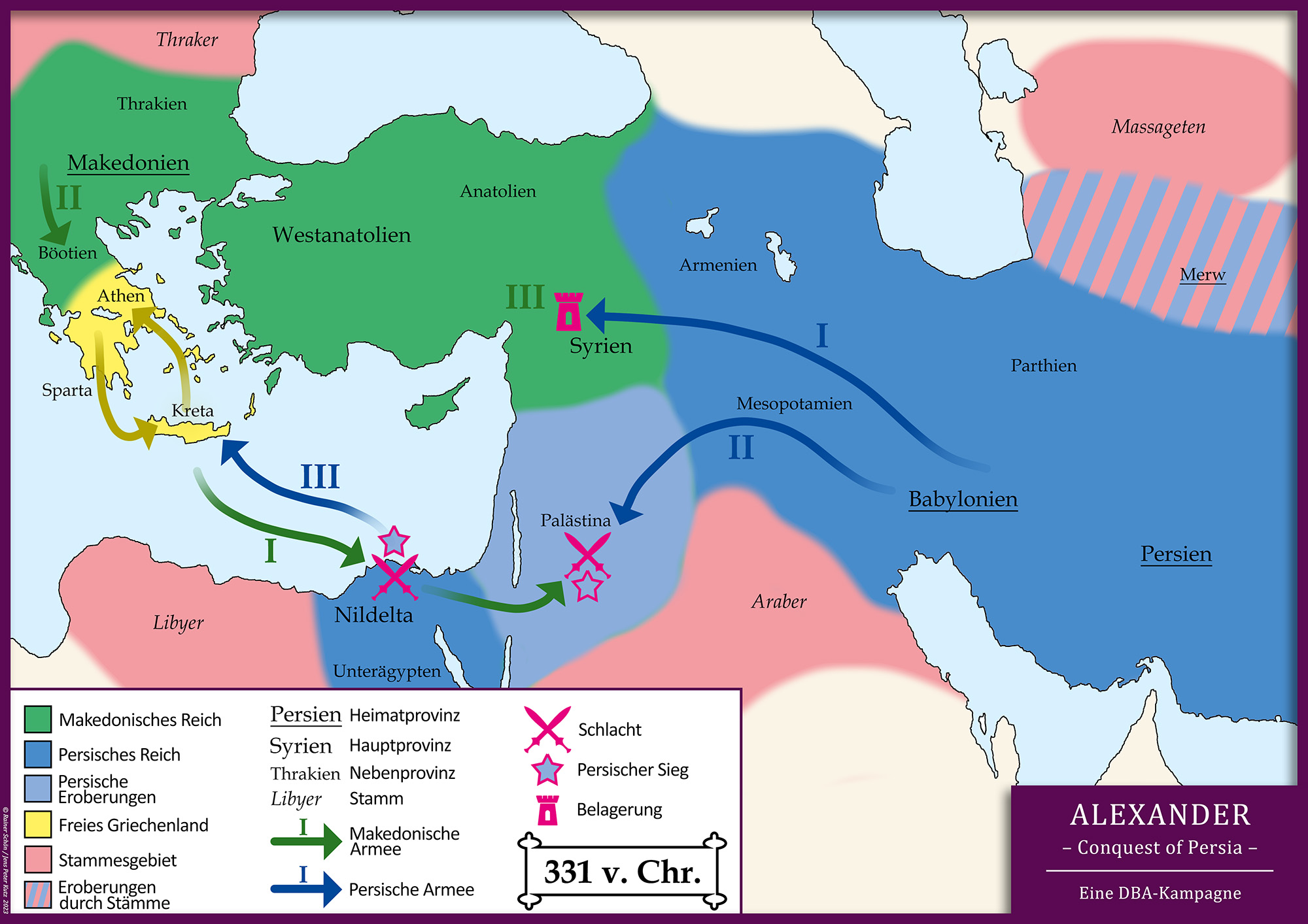 Die Chronistenpflicht gebietet es aber noch, die Karte für das Jahr 331 v. Chr. (Frühling und Sommer) nachzureichen: