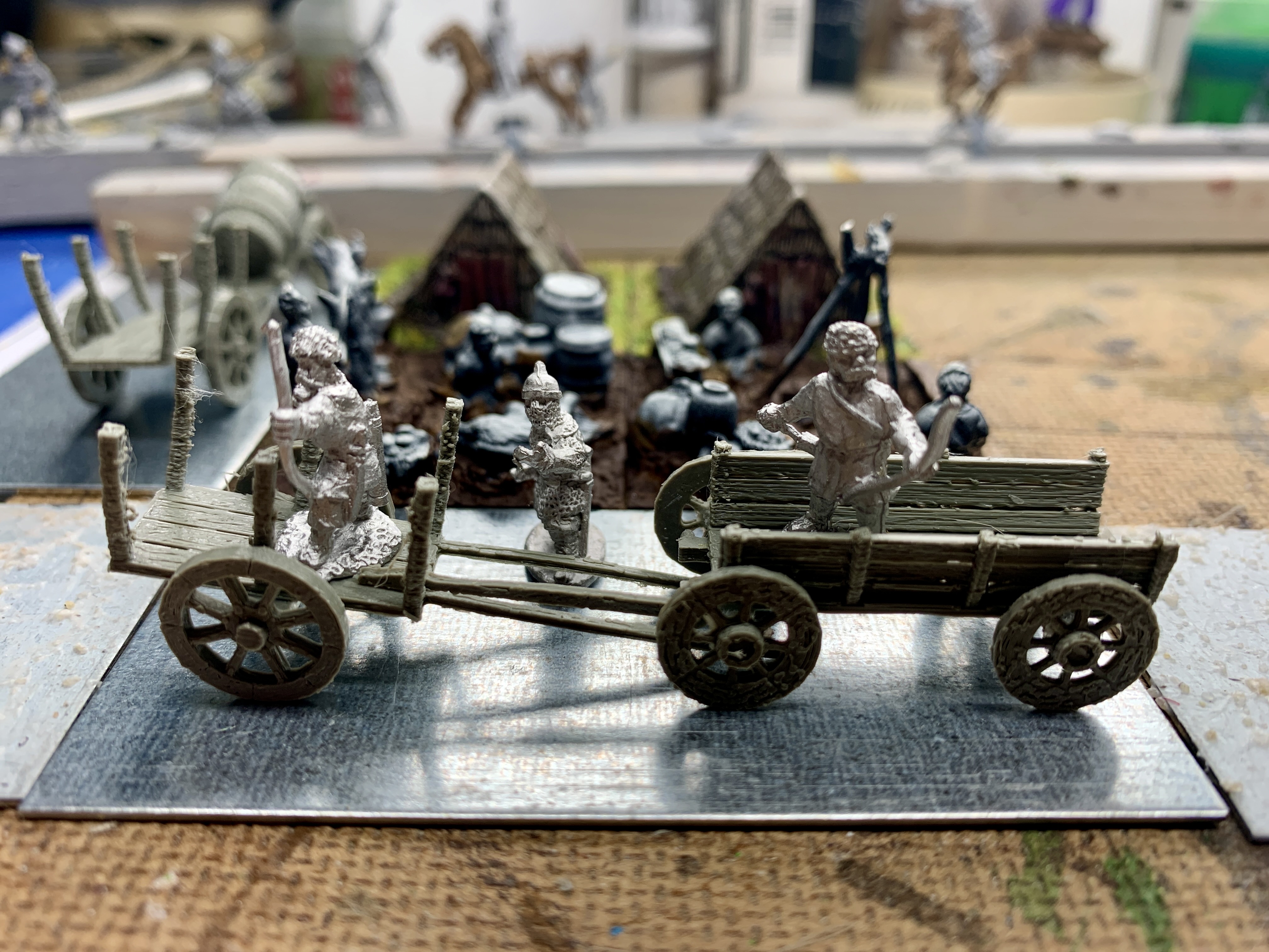 Aktuell in der Mache bzw Fertigstellung noch das Camp Bge (O), aber es fehlt noch das "waggon laager" TF - ich drucke aktuell ein paar Karren, siehe Bild. Was das basing angeht: wäre das so zulässig