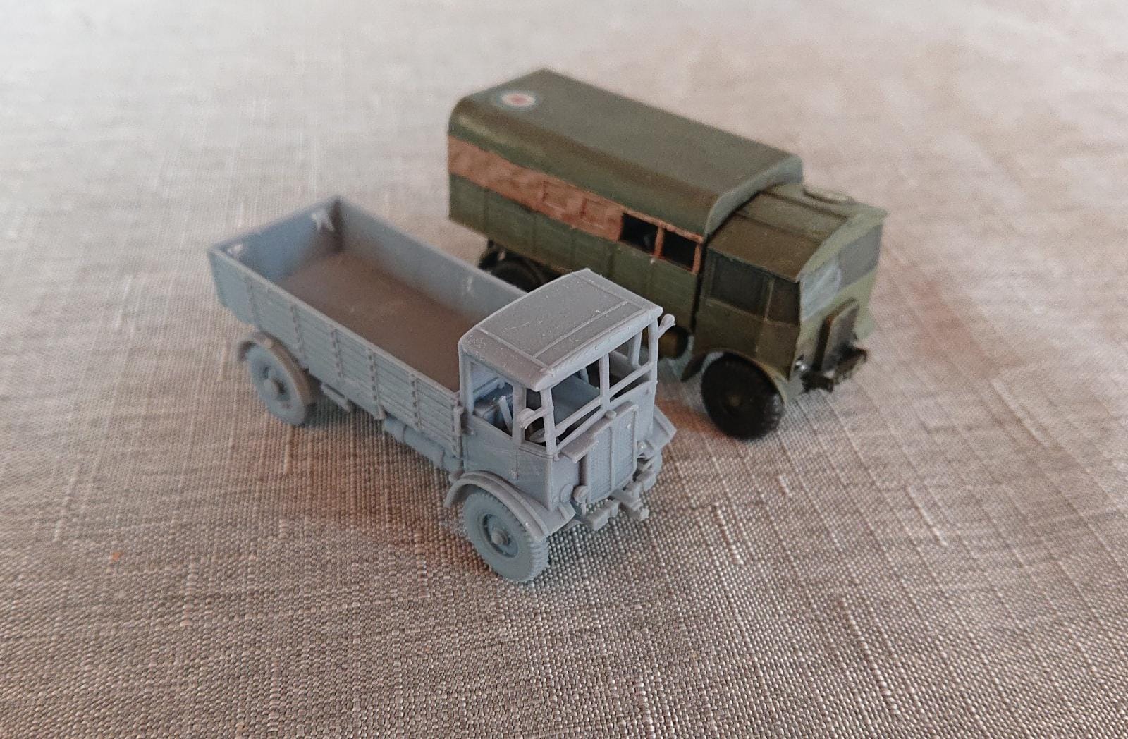 Der AEC Matador (frühe Dach-Version) glänzt im Vergleich zum fünffach teureren Zvedzda-Modell. Der Turm des Staghound unten wurde mit einem 2k-Anycubic Resin gedruckt, der Rumpf mit dem 4k-Resin. Auf den Liter ist das 4k-Resin etwa 10 Euro teurer. Ich konnte aber meine Fehldruck-Rate deutlich reduzieren, ich kann Supports spielend einfach entfernen und die ausgehärteten Modelle machen mit dem 4k-Resin einen stabileren Eindruck. Ich werde also nur noch das 4k-Resin verwenden.
