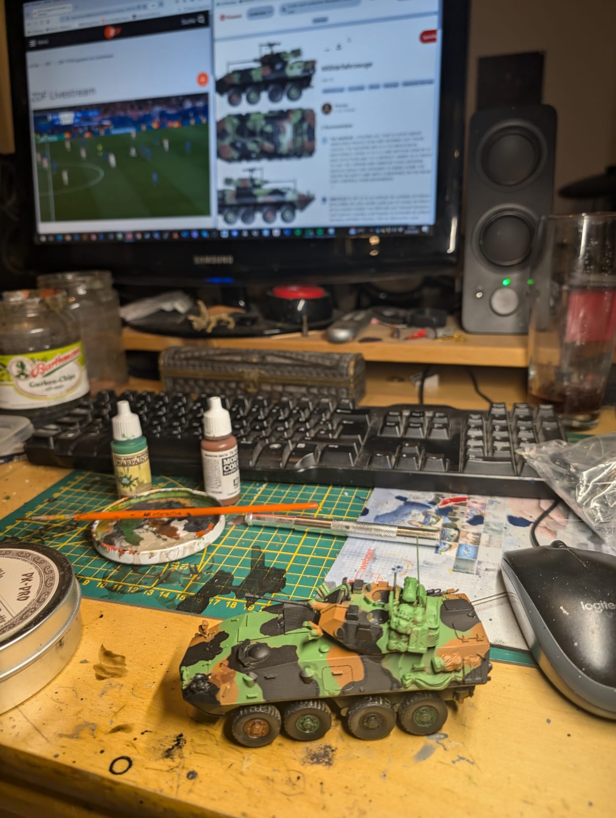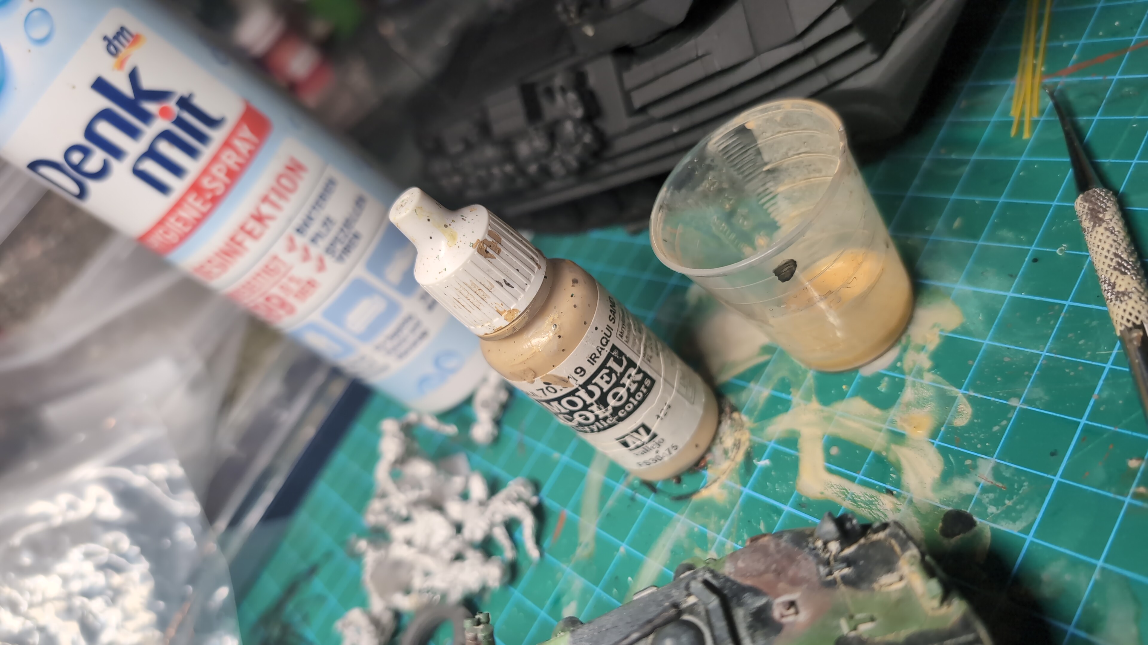 Das Tarnmuster wurde mit sprühfarbe von vallejo aufgetragen und hier und da manuell ausgebessert.