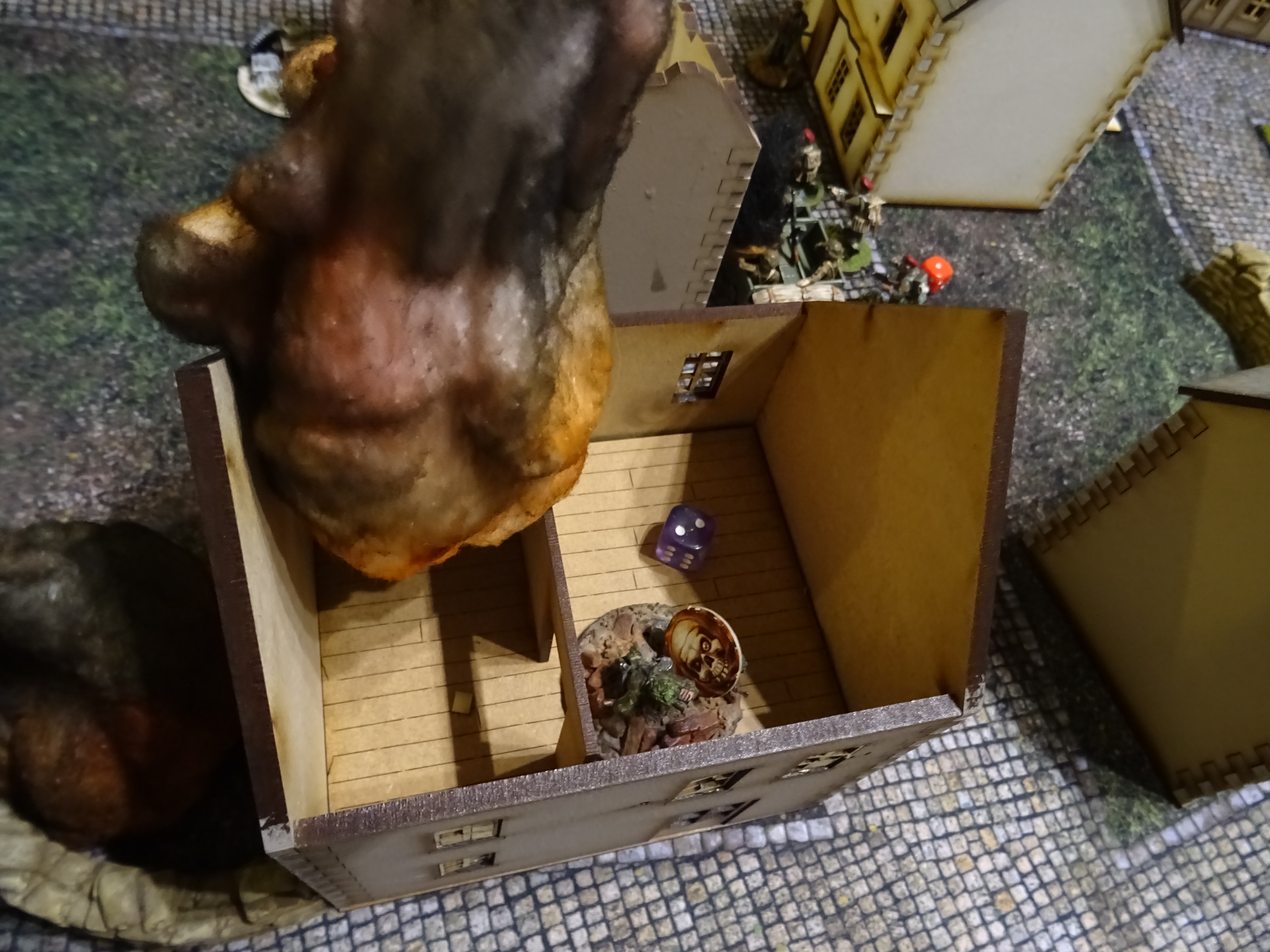 So passiert was passieren muss, wenn auch wieder spektakulär. Die Grenadieren auf der deutschen linke Flanke, welche ein Missionziel halten hören das Pfeifen der Mörsergranate. Ein Volltreffer!, Doch zum Glück für die Grenadiere schlägt die Granate bis ins Erdgeschoss durch bevor sie explodiert. Anführer des weiteren