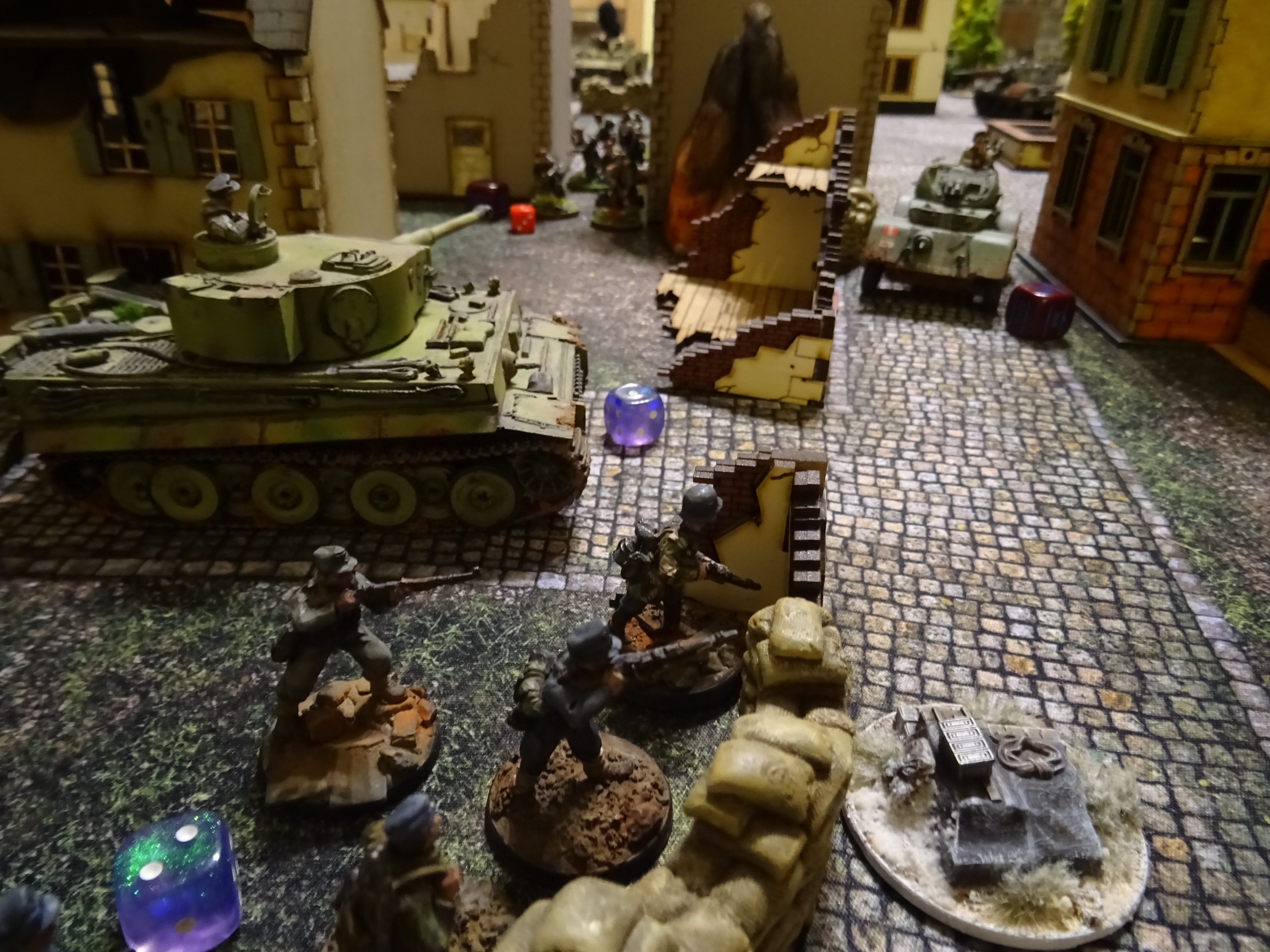 Der Tiger wurde vom Cromwell getroffen, das ausgebrochene Feuer konnte jedoch gelöscht werden. Beim anschließenden Test um in den Angriff zu gehen versagten die Nerven der Tiger Besatzung jedoch und der Tiger zog sich etwas zurück. Dadurch konnte die die Osttruppen aus dem Hinterhalt Ihre Panzerfaust auf den Staghound abschießen. Jedoch ohne Erfolg.