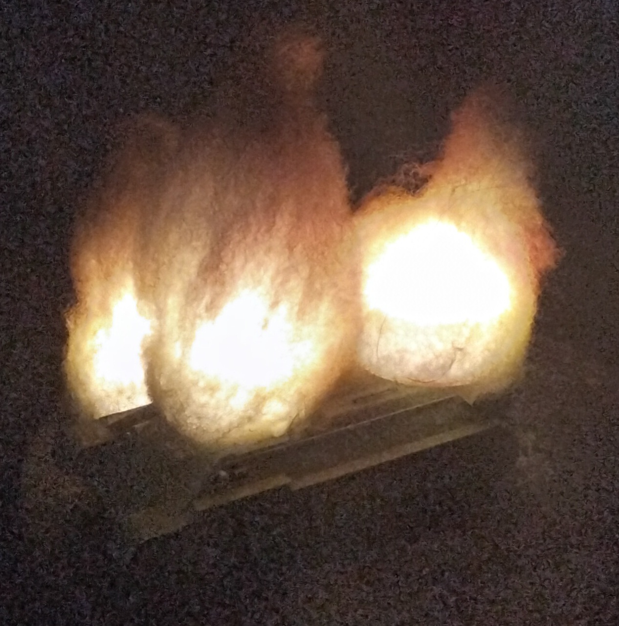 Ist ein Teelicht mit Watte die gelb Orange rot und schwarz mit der airbrush gesprüht ist