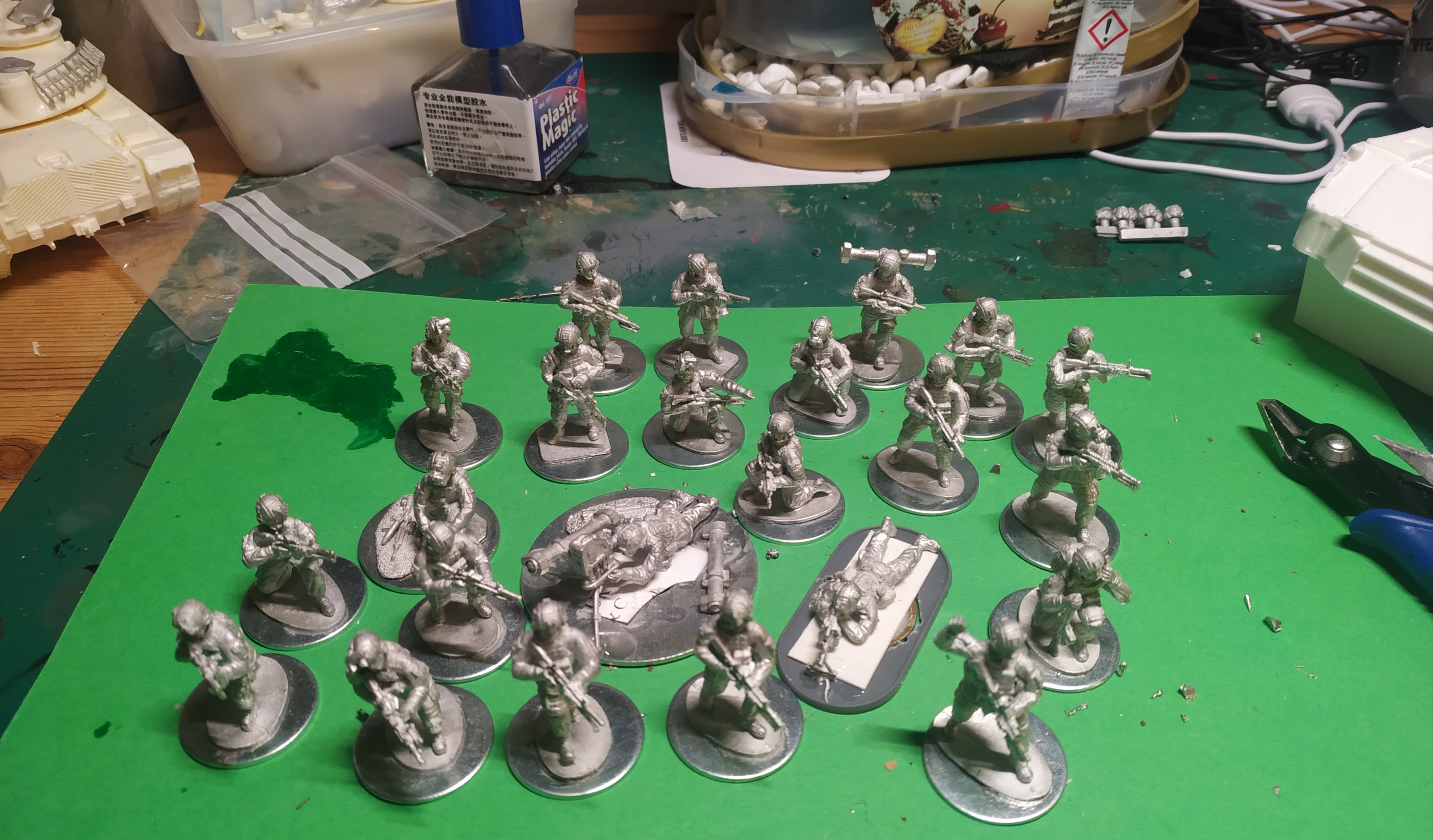 Allerdings muss ich erst mal das grün an den Helmen noch etwas abdunkeln und suche noch nach ner Möglichkeit französische Flaggen auf die Arme zu pappen... Abziehbilder wären toll, aber ich find keine