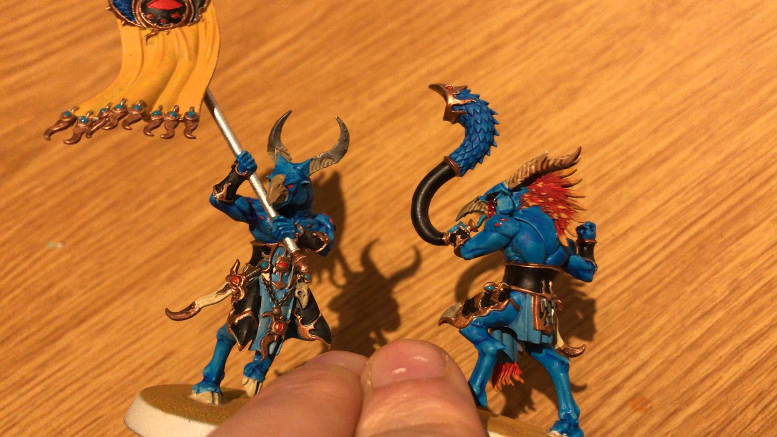 Die ersten 10 Tzaangor sind jetzt auch Startbereit mit einem Icon Bearer, einem Brayhorn, 2 Mutants, 4 Greatblades der Twistbray mit Paired Savage Blades und ein normaler Tzaangor mit Paired Savage Blades.