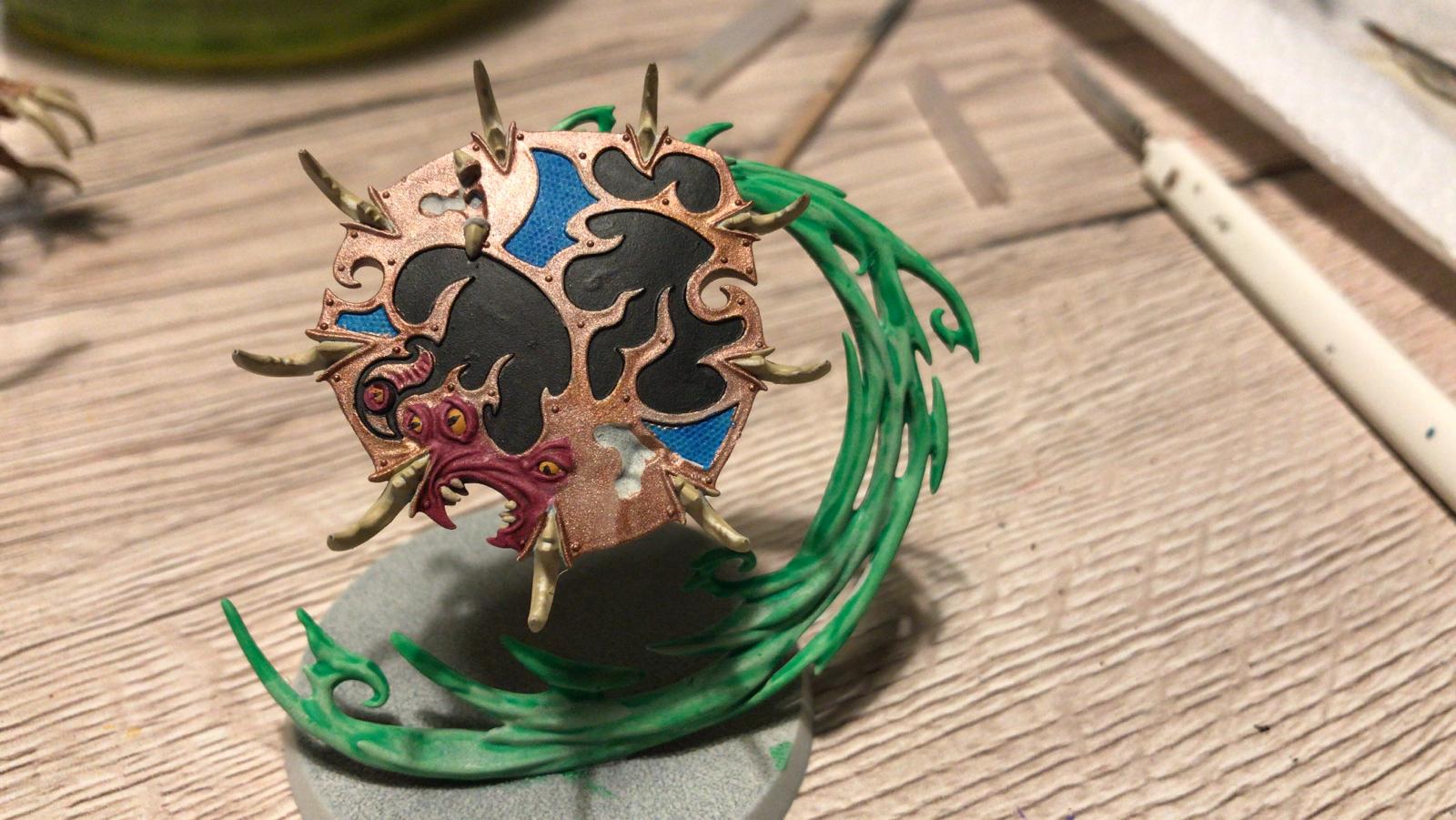 Das hab ich natürlich schon gemacht, dass die Farben drunter sind. Hab auch eigentlich ziemlich viel drauf gespachtelt, am Rand hat es auch ein bisschen funktioniert. Vielleicht braucht das einfach ein paar Stunden..? der Plan war alle Dämonenbases so zu machen. Da muss ich wohl noch mehr rum probieren bis es so aussieht wie auf den Bildern bei Google... hoffentlich kann man das mit dem Messer abkratzen von der Changecaster Base :wall