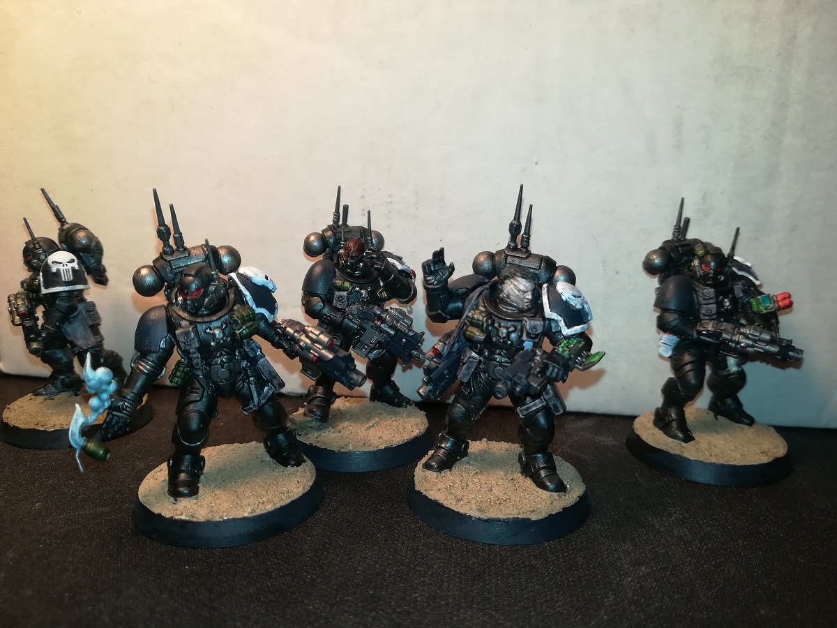 Aus der Frühphase der Kill-Team-Begeisterung (Generation Octarius) stammt dieser 5er-Trupp von (wie auch immer die heißen, aber es sind Phobos-Rüstungen).