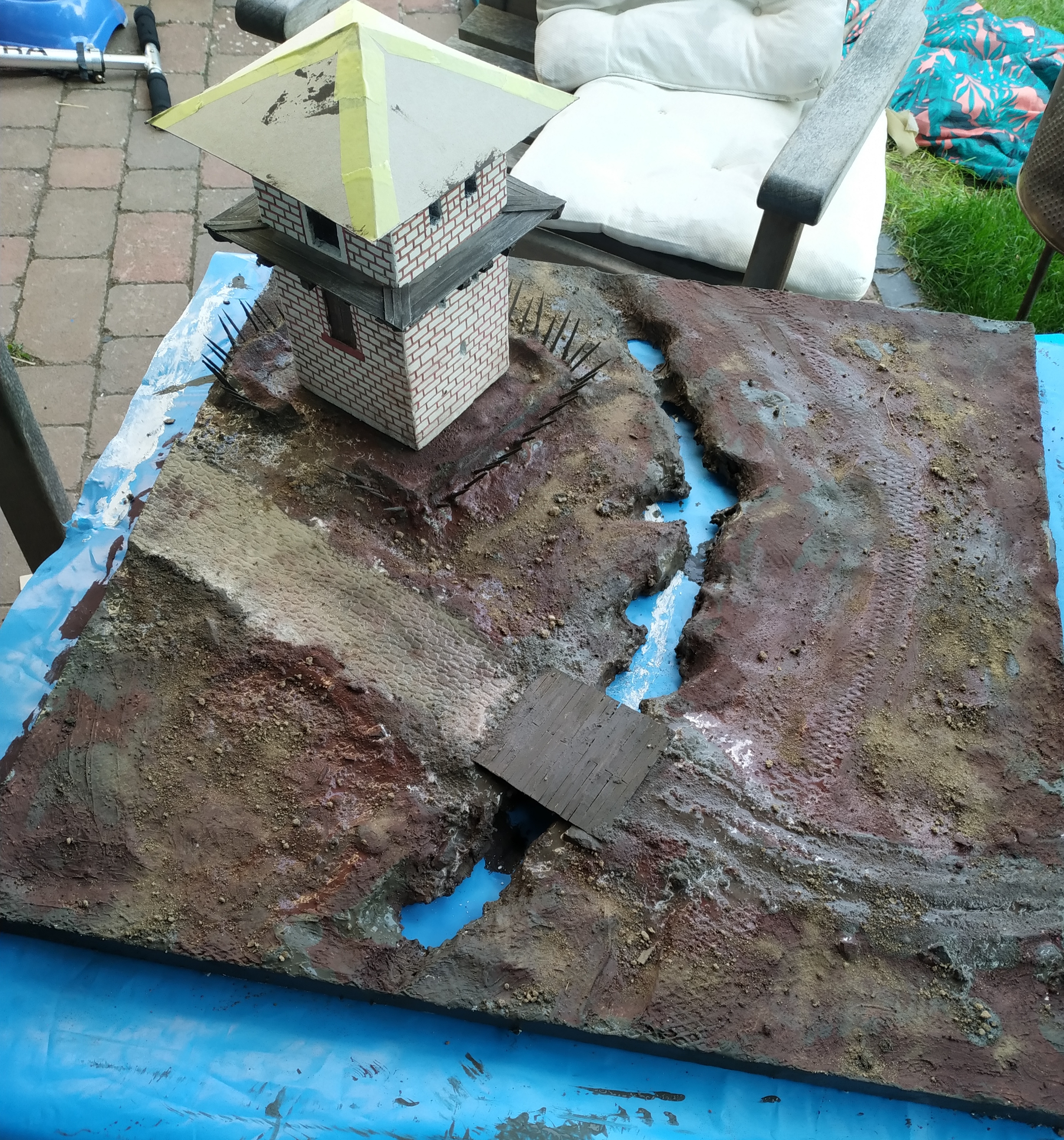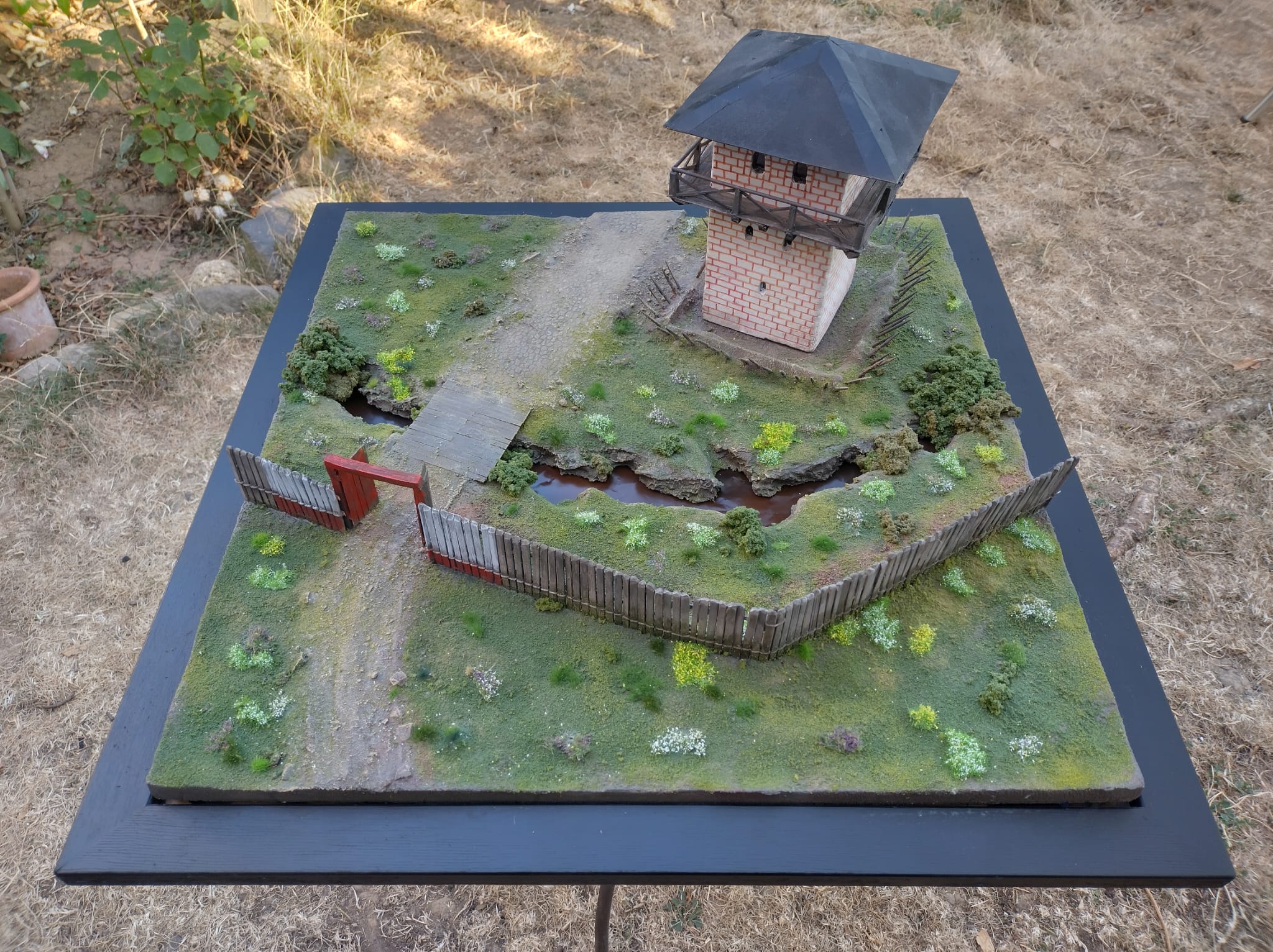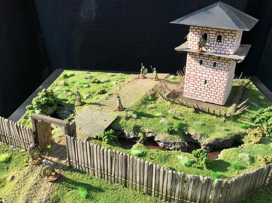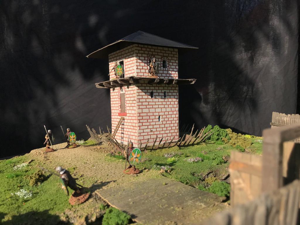 Nunja... Da ich morgen im Rahmen einer Römerwanderung für Kinder einen kleinen Vortrag am Limesturm in Rommelhausen halte, habe ich das Diorama Mal etwas entstaubt, das Geländer fertig gebaut und das Tor bemalt. Leider ist das Tor komplett verzogen und muss neu konstruiert werden... Aber für morgen sollte es ausreichend sein...